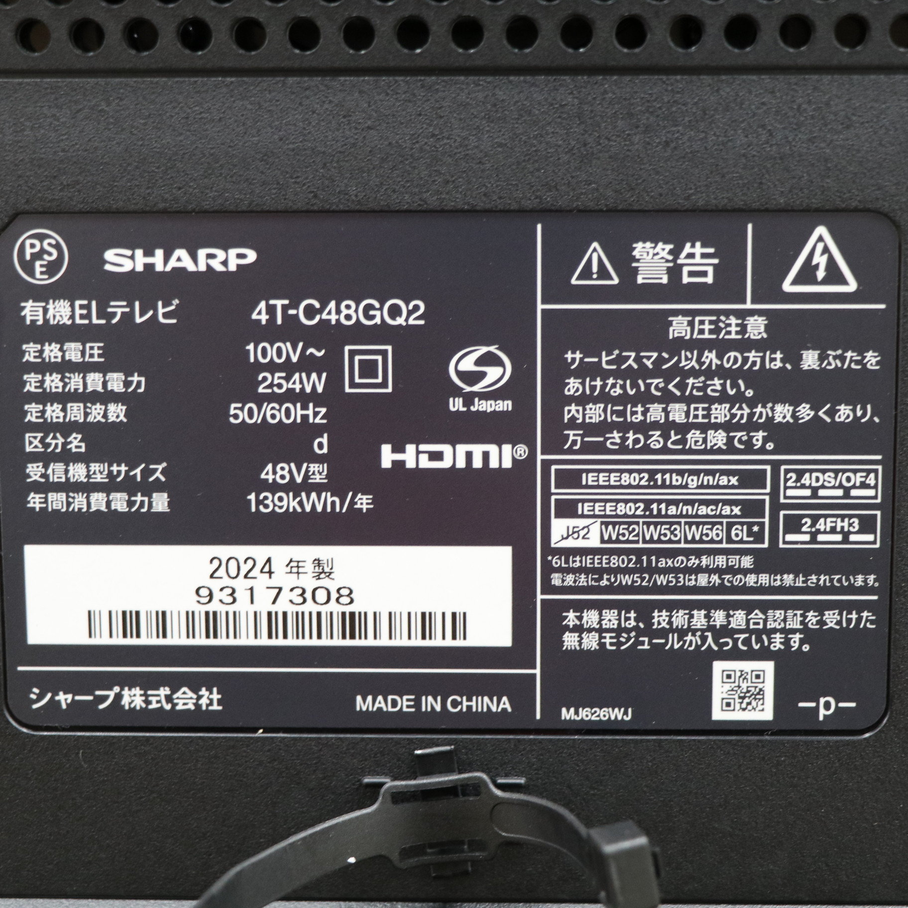 〔展示品〕 有機ELテレビ AQUOS ブラック 4T-C48GQ2 [48V型 /Bluetooth対応 /4K対応 /BS・CS 4Kチューナー内蔵 /YouTube対応]