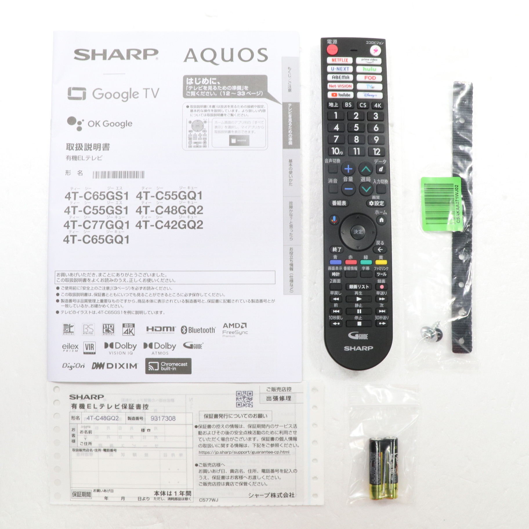 中古商品ランクについて 付属品・商品状態について 〔付属品〕説明書、かんたん使い方ガイド、リモコン、リモコン用単4形乾電池×2、スタンド取付金具、スタンドカバー、スタンドベース、スタンド組立用ネジ×4、スタンド取付用ネジ×4、転倒防止ベルト一式、スタンド回転ロックネジ