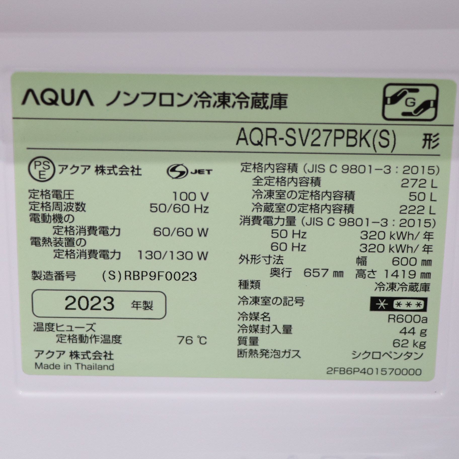 〔展示品〕 冷蔵庫 ブライトシルバー AQR-SV27PBK(S) [幅60cm /272L /3ドア /右開きタイプ /2023年]