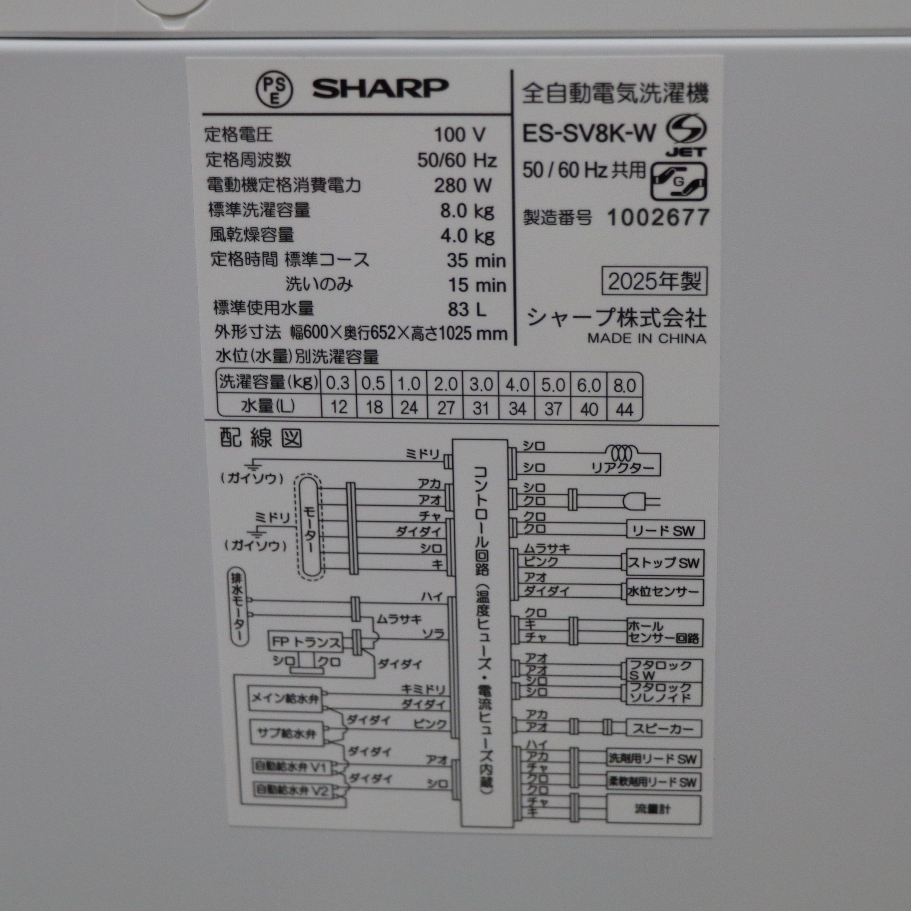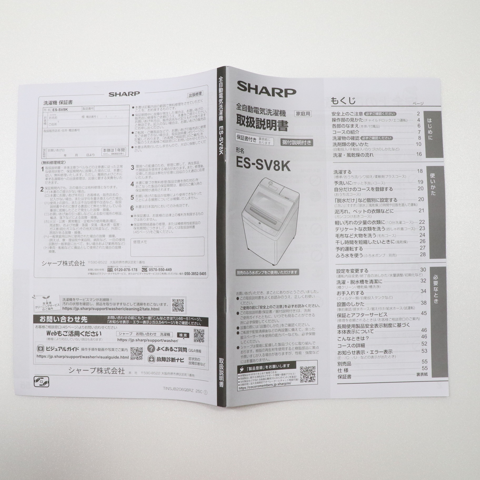 〔展示品〕 全自動洗濯機 ホワイト系 ES-SV8K-W [洗濯8.0kg /乾燥機能無 /上開き]