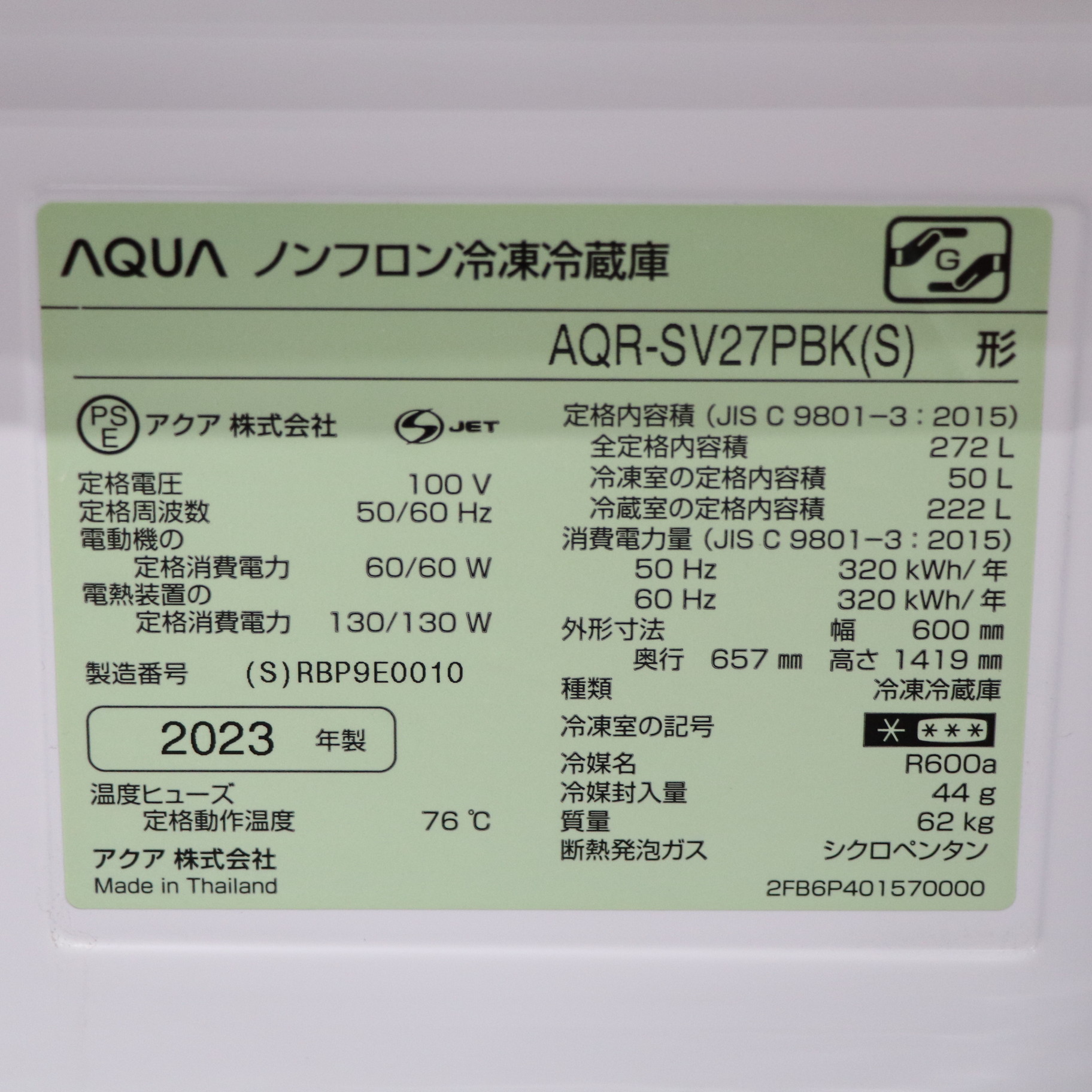 〔展示品〕 冷蔵庫 ブライトシルバー AQR-SV27PBK(S) [幅60cm /272L /3ドア /右開きタイプ /2023年]