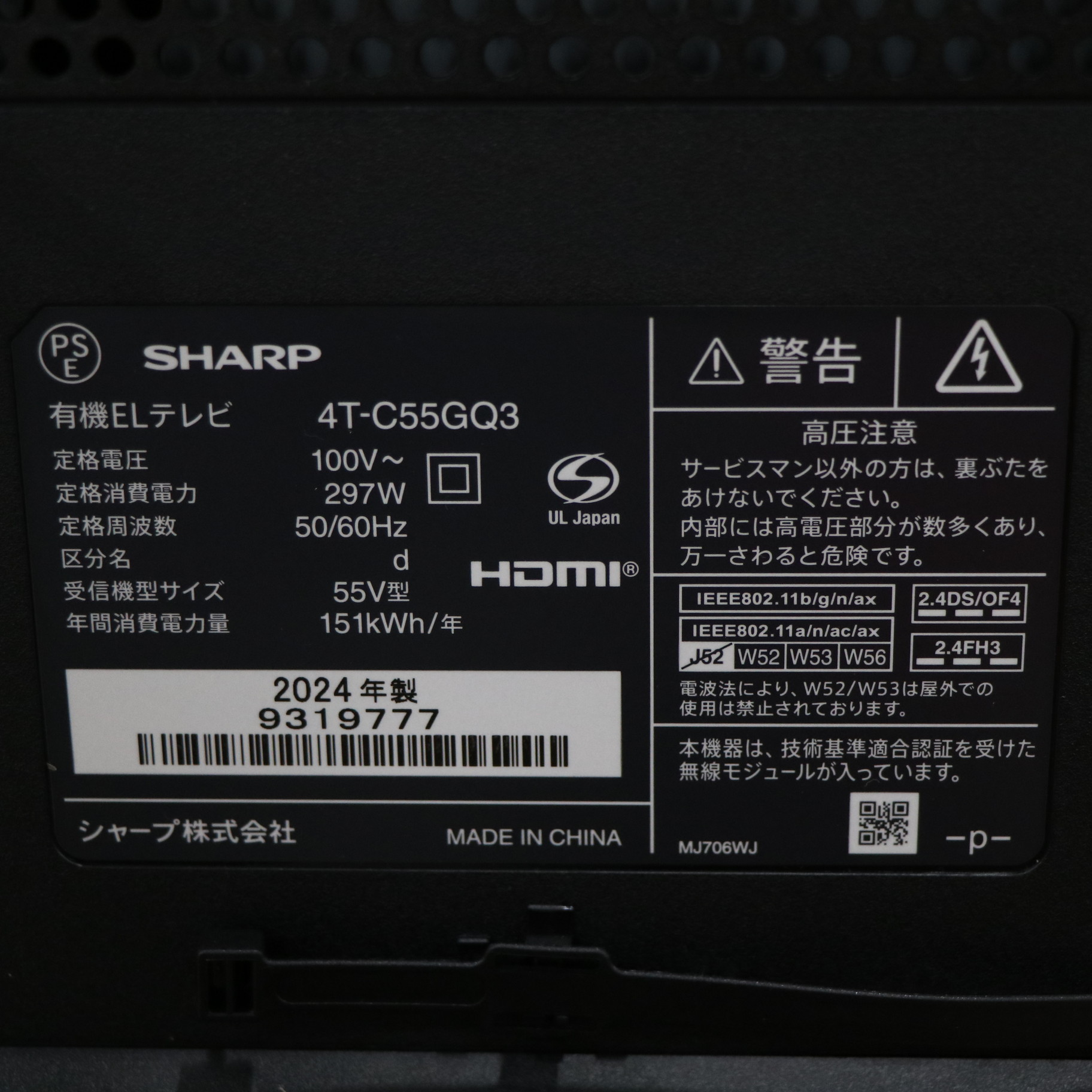 〔展示品〕 有機ELテレビ AQUOS 4T-C55GQ3 [55V型 /Bluetooth対応 /4K対応 /BS・CS 4Kチューナー内蔵 /YouTube対応]