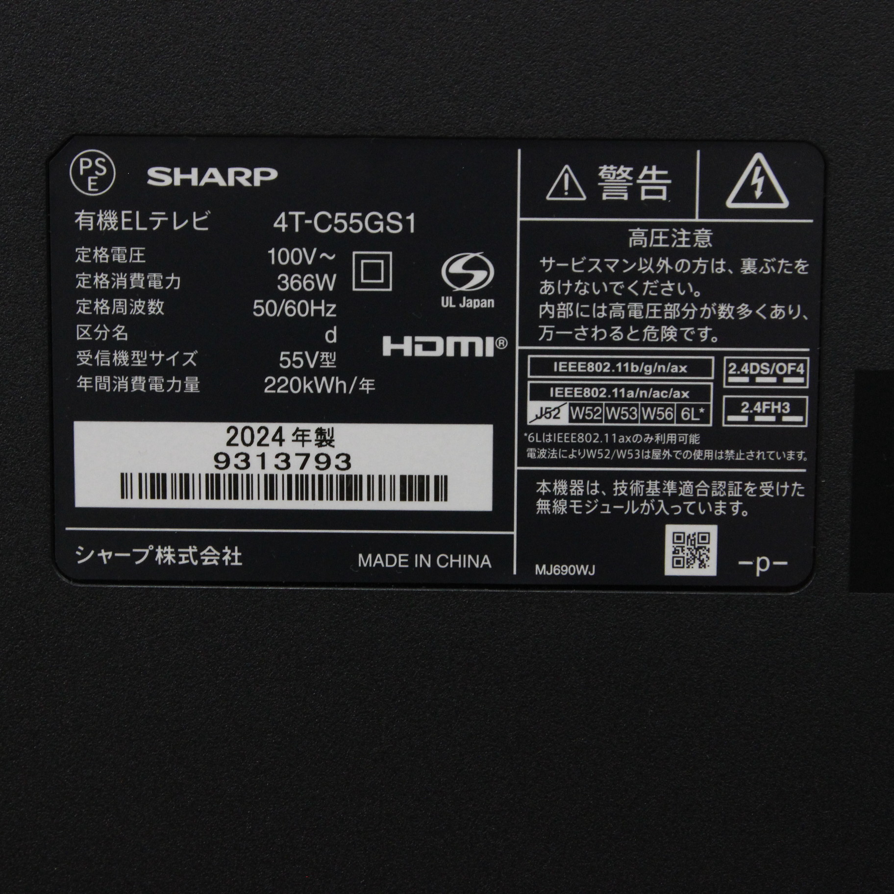 商品名 〔展示品〕 有機ELテレビ AQUOS ブラック 4T-C55GS1 [55V型 /Bluetooth対応 /4K対応 /BS・CS 4Kチューナー内蔵 /YouTube対応]
