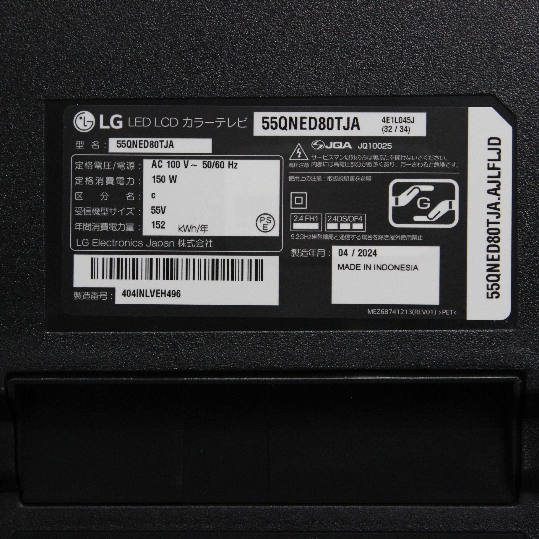 〔展示品〕 液晶テレビ 量子ドット 55QNED80TJA [55V型 /Bluetooth対応 /4K対応 /BS・CS 4Kチューナー内蔵 /YouTube対応]
