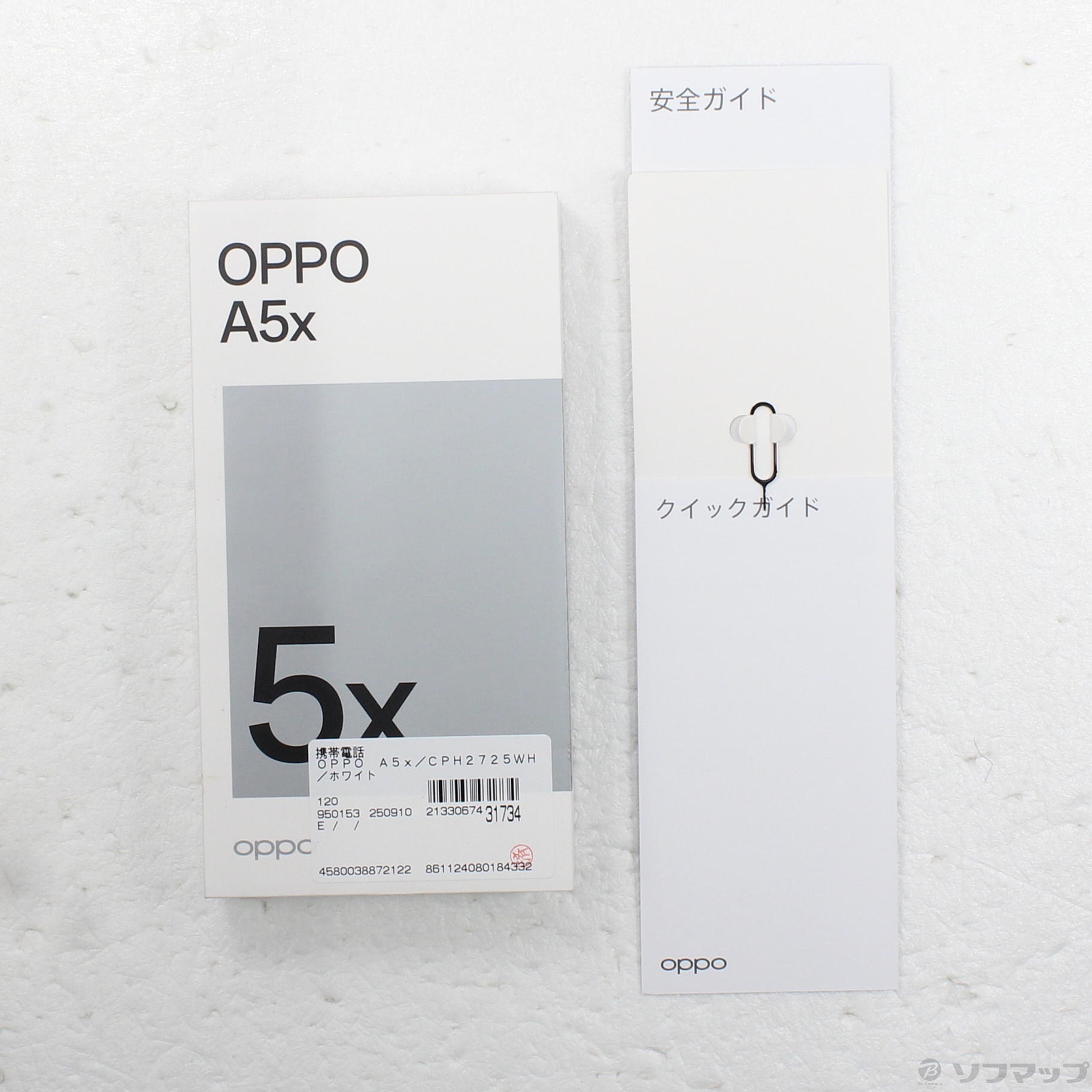〔中古品〕 OPPO A5x 128GB ホワイト CPH2725WH SIMフリー [6.7インチ液晶/Snapdragon 6s 4G Gen 1]