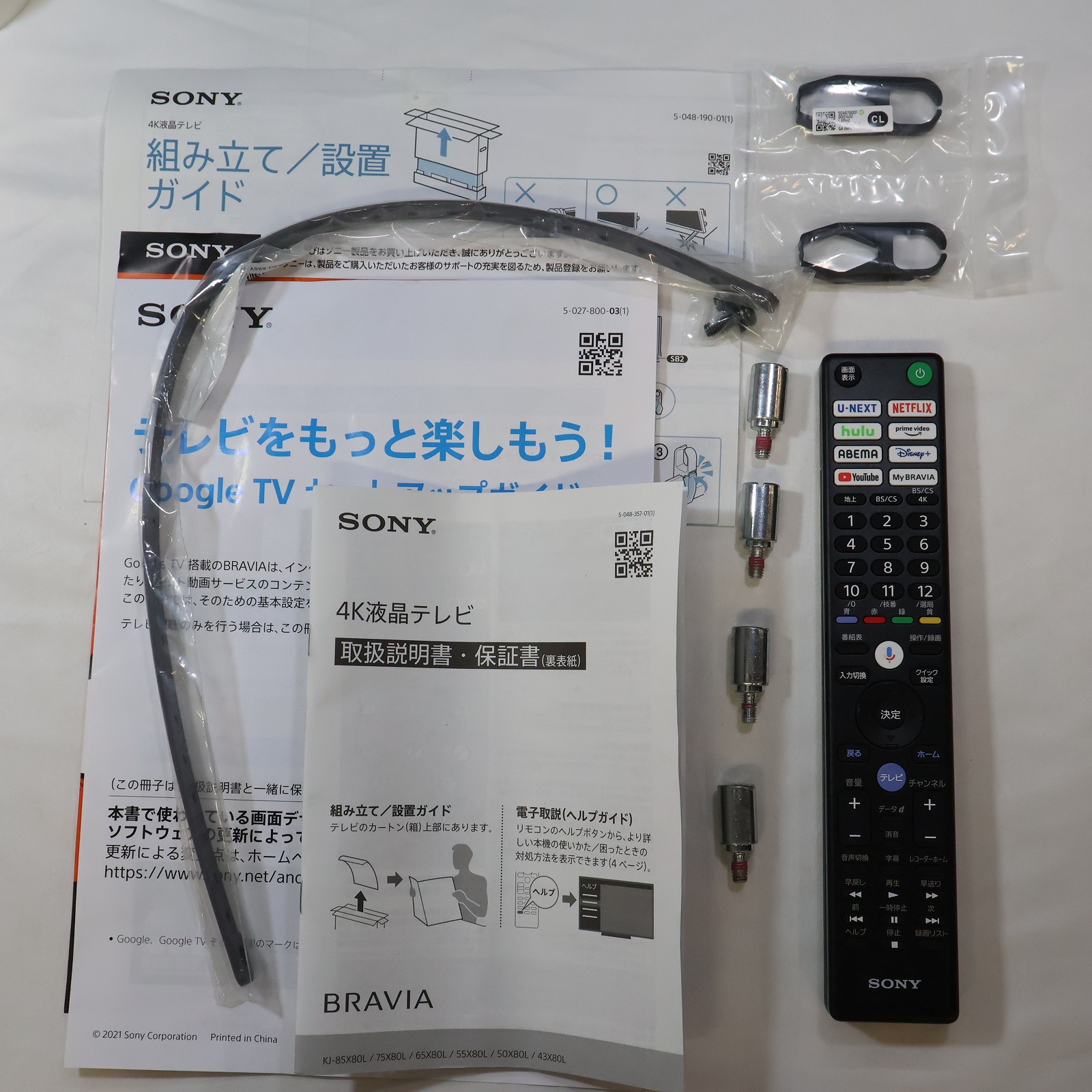 中古商品ランクについて 付属品・商品状態について 〔付属品〕説明書、リモコン、スペーサー(VS)×4、ケーブルカバー(CL)×2、スタンド(SB1)、スタンド(SB2)、組み立て/設置ガイド、GoogleTVセットアップガイド、製品登録のおすすめ、転倒防止ベルト一式(FB)