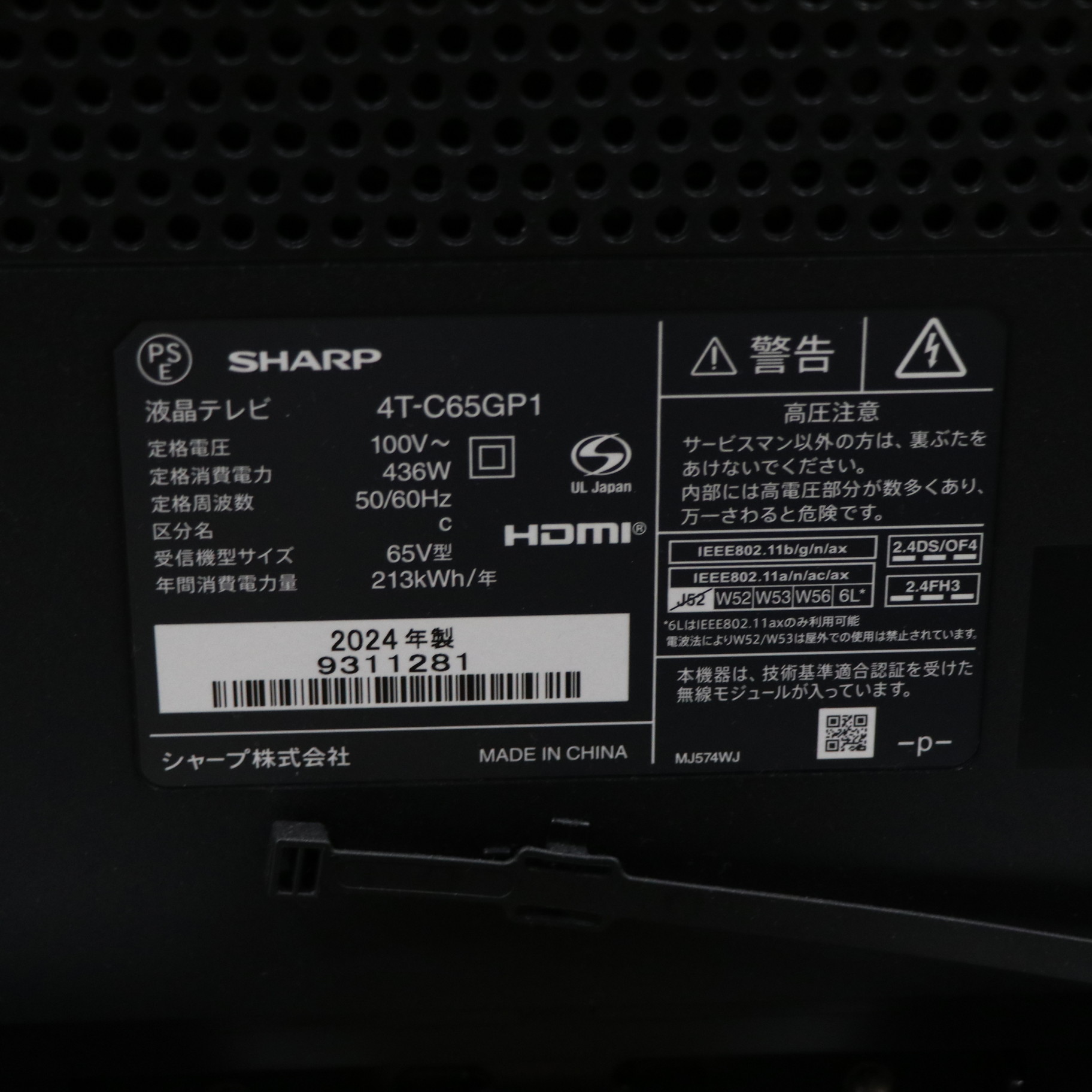 〔展示品〕 液晶テレビ AQUOS ブラック 4T-C65GP1 [65V型 /4K対応 /BS・CS 4Kチューナー内蔵 /YouTube対応]