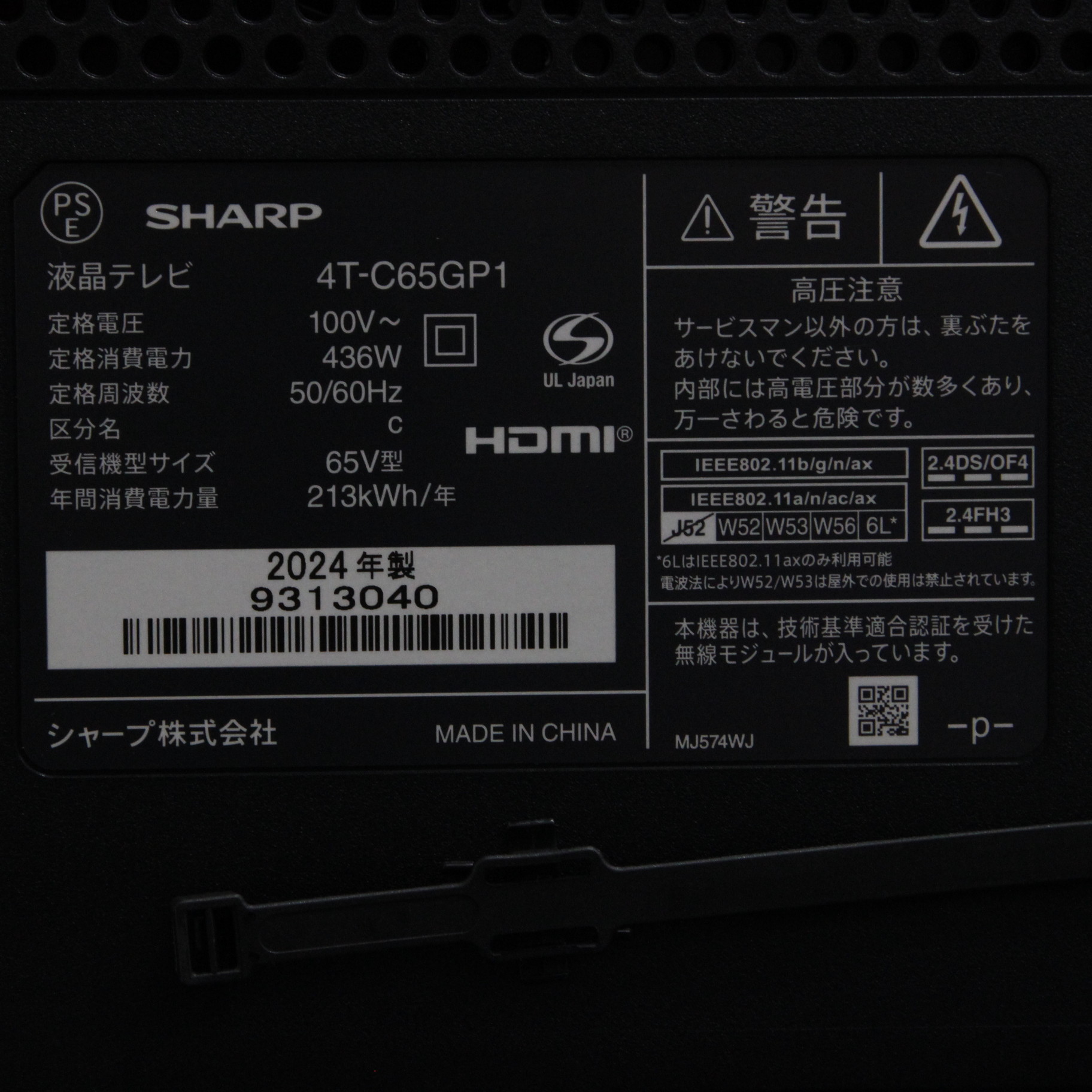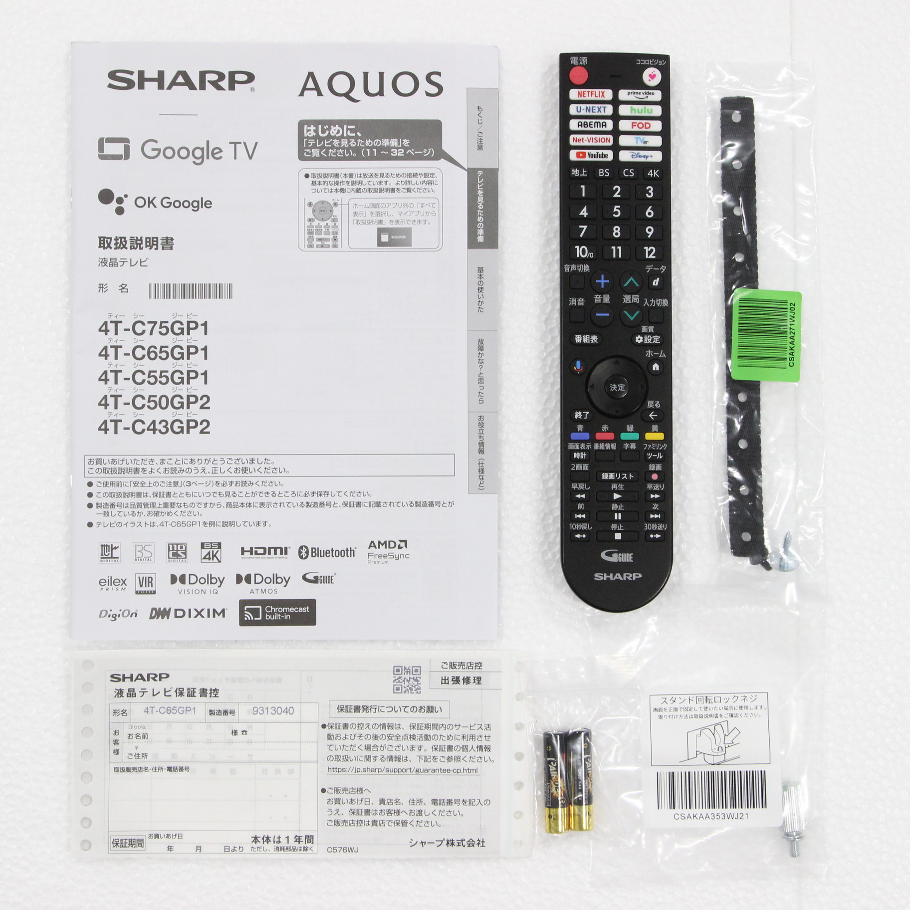 〔展示品〕 液晶テレビ AQUOS ブラック 4T-C65GP1 [65V型 /4K対応 /BS・CS 4Kチューナー内蔵 /YouTube対応]