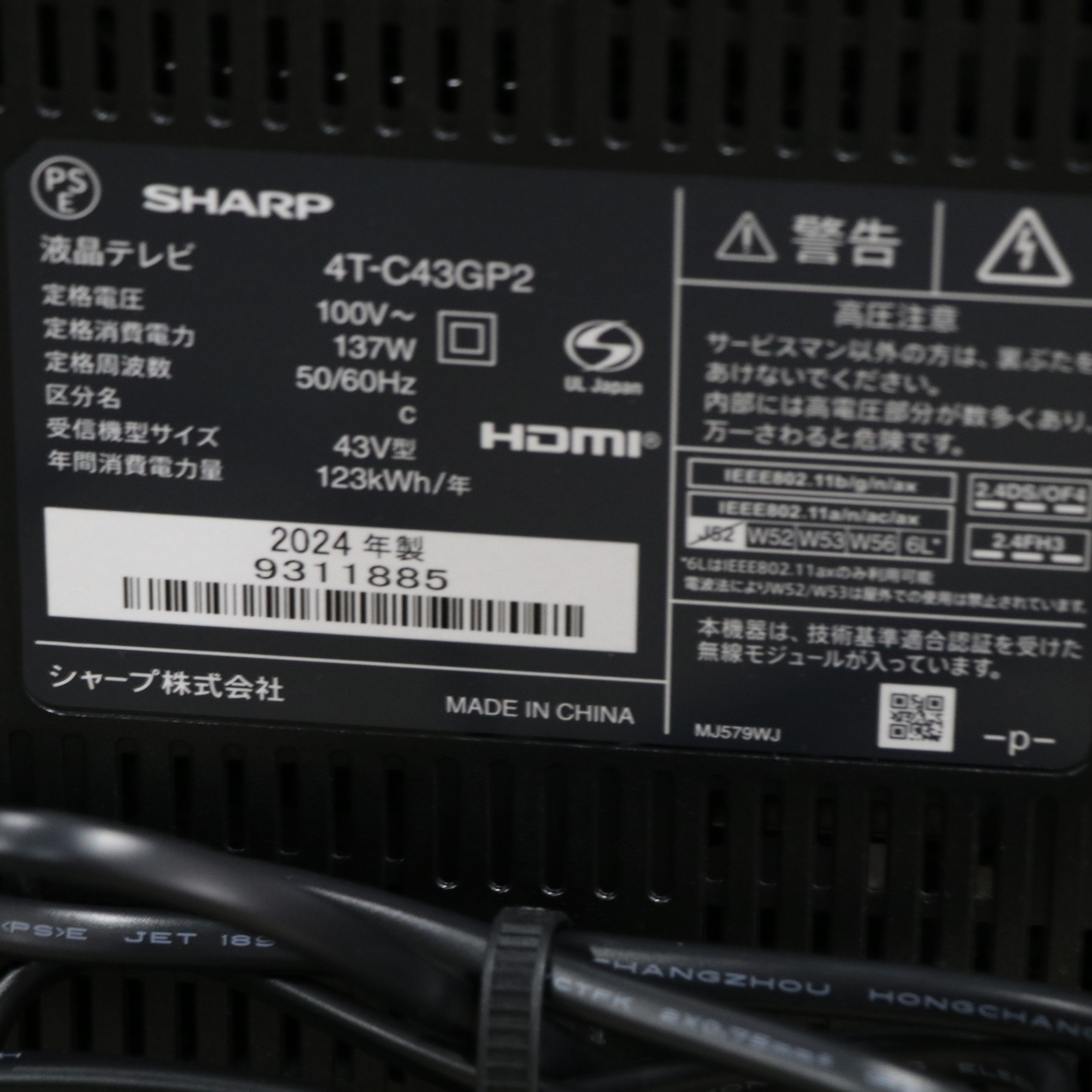 〔展示品〕 液晶テレビ AQUOS ブラック 4T-C43GP2 [43V型 /Bluetooth対応 /4K対応 /BS・CS 4Kチューナー内蔵 /YouTube対応]