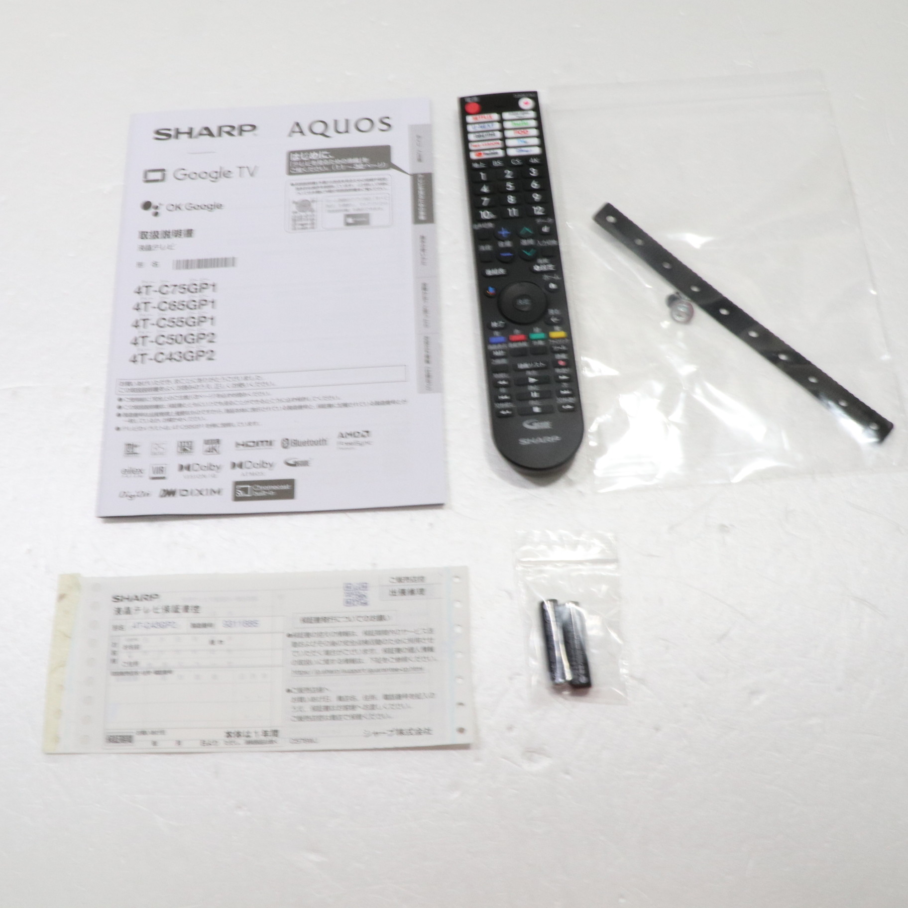 中古商品ランクについて 付属品・商品状態について 〔付属品〕説明書、スタンド取付金具、スタンドカバー、スタンドベース、スタンド取付用ネジ×4、スタンド組立用ネジ×4、転倒防止ベルト、転倒防止ベルトテレビ取付用ネジ、転倒防止ベルトテレビ台固定ネジ、スタンド回転ロックネジ、リモコン、リモコン用単4乾電池×2