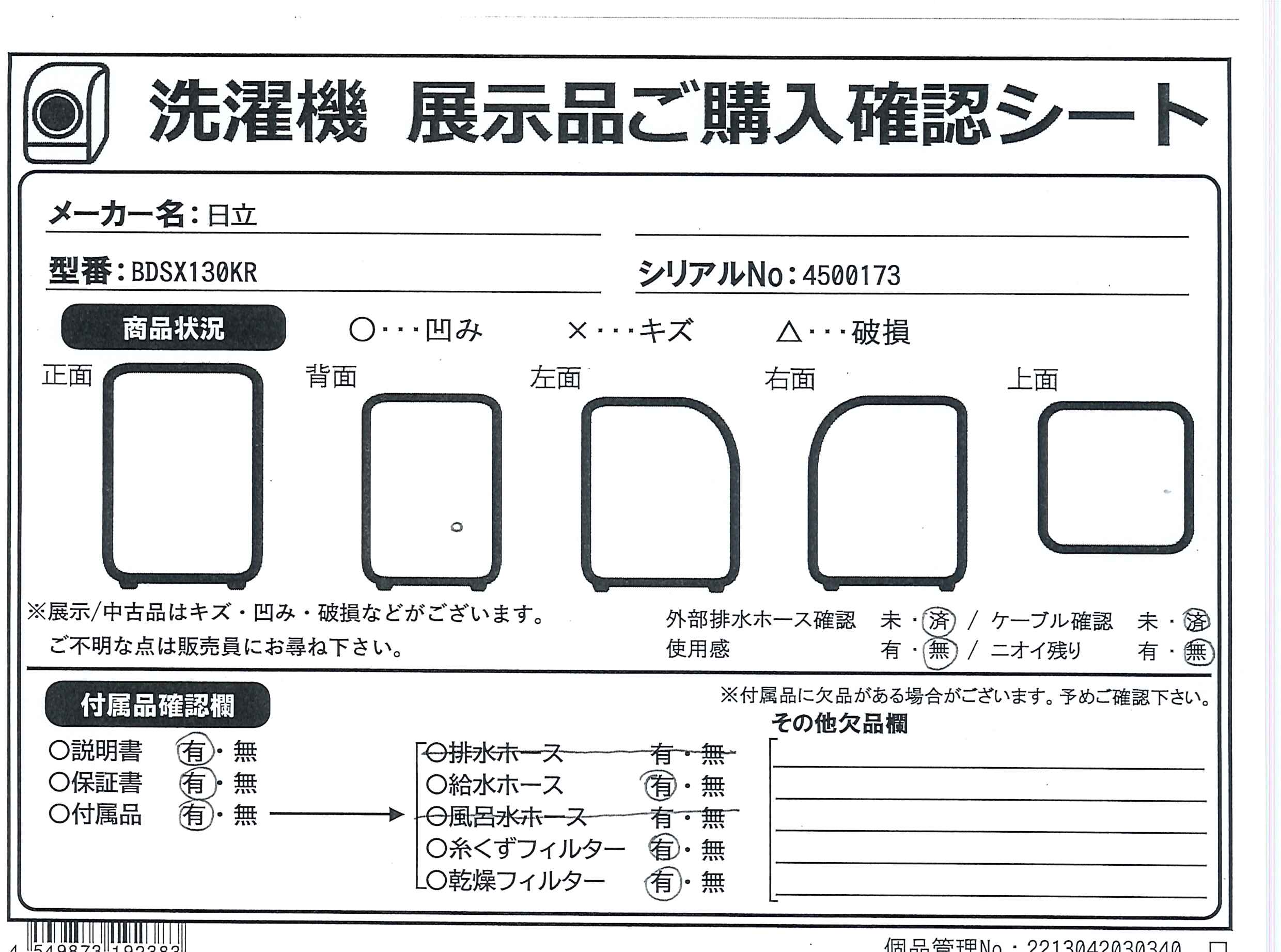 中古商品ランクについて 付属品・商品状態について 〔付属品〕取扱説明書、給水ホース、カバー×4、輸送用ボルト×4