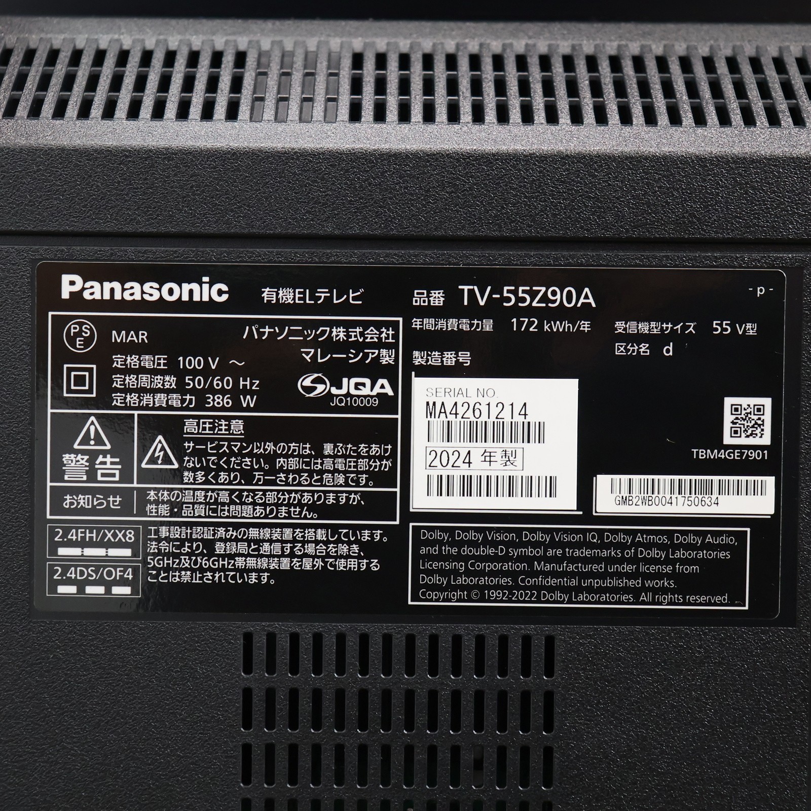 中古商品ランクについて 付属品・商品状態について 〔付属品〕取扱説明書、リモコン、転倒防止スタンド、本体固定用ねじ(M4)×4、ケーブルカバー、転倒・落下防止部品一式