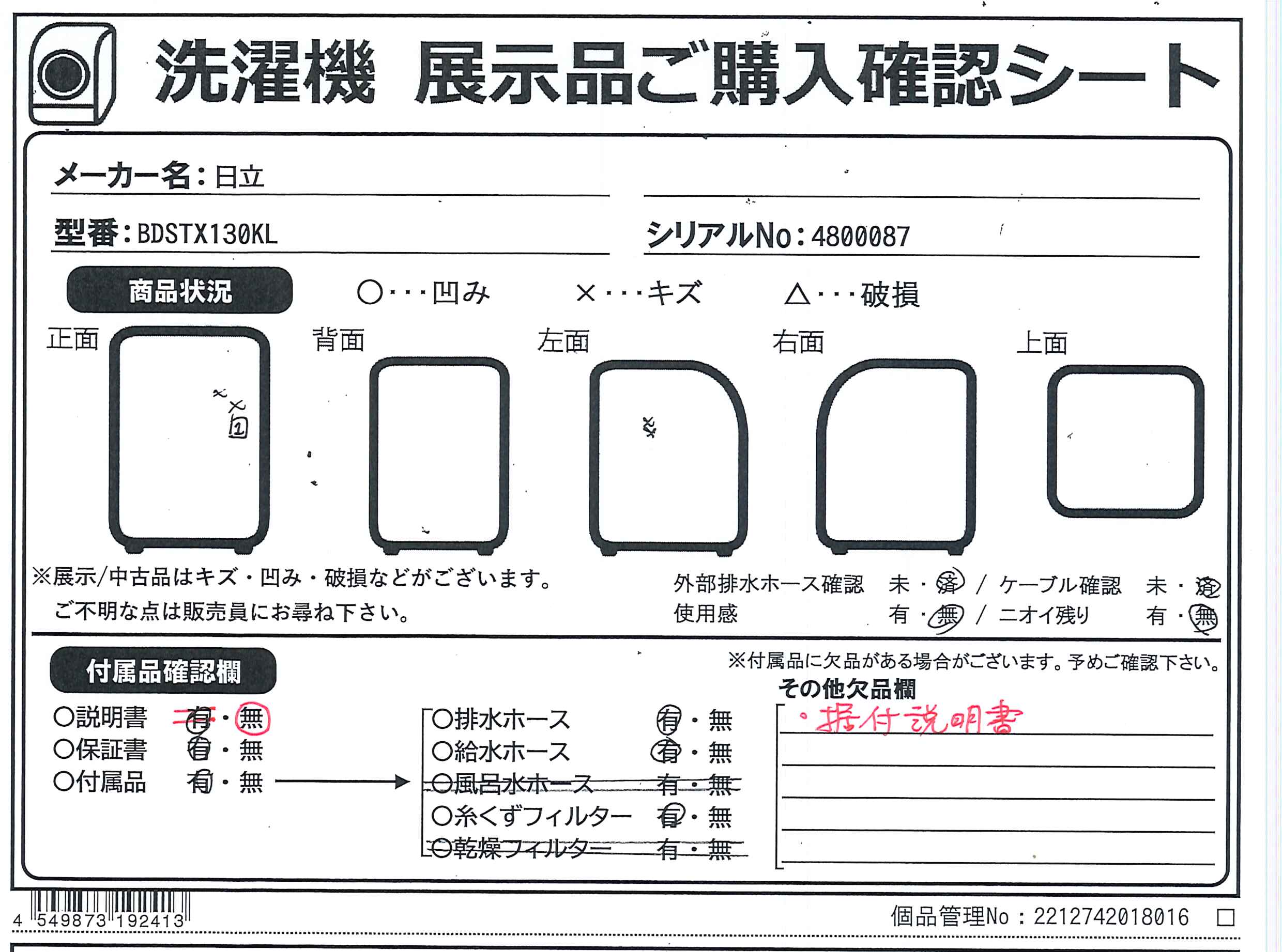 中古商品ランクについて 付属品・商品状態について 〔付属品〕給水ホース(約0.8m)、カバー×4、輸送用ボルト×4