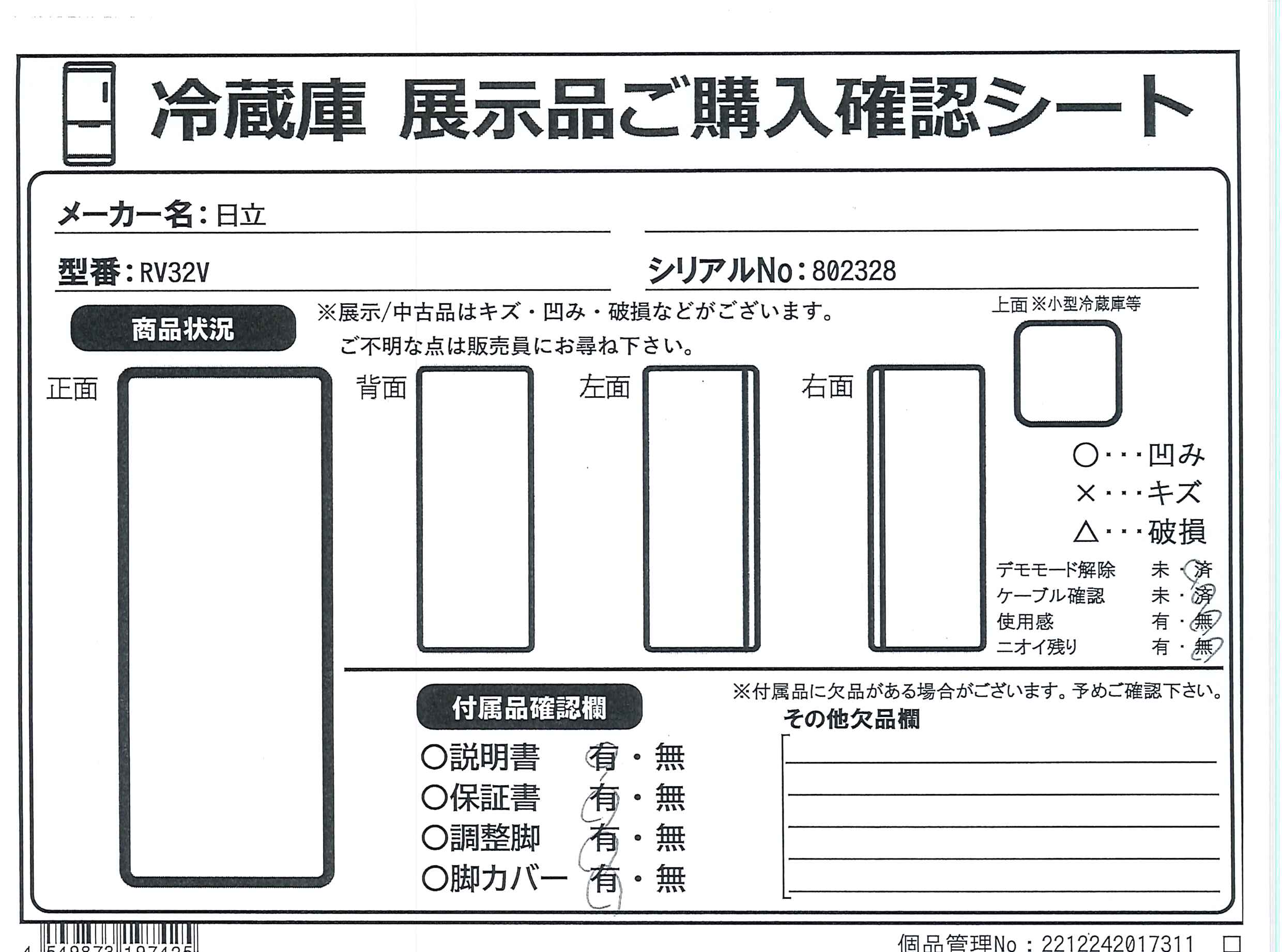 中古商品ランクについて 付属品・商品状態について 〔付属品〕説明書、調節脚X2、脚カバー、小物ケース、卵スタンド、給水タンク、製氷スコップ、蒸発皿