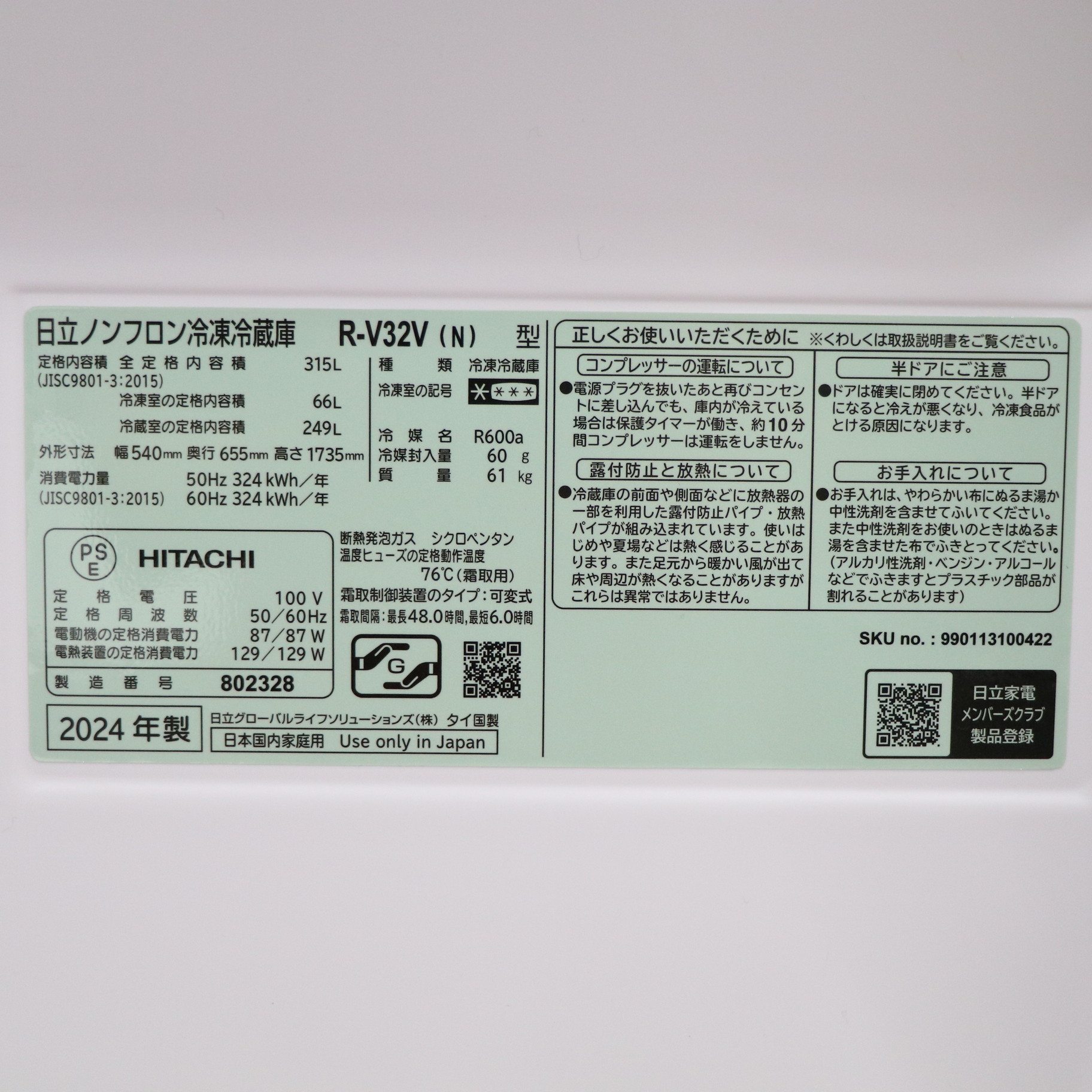〔展示品〕 冷蔵庫 Vタイプ ライトゴールド R-V32V-N [幅54cm /315L /3ドア /右開きタイプ /2024年]