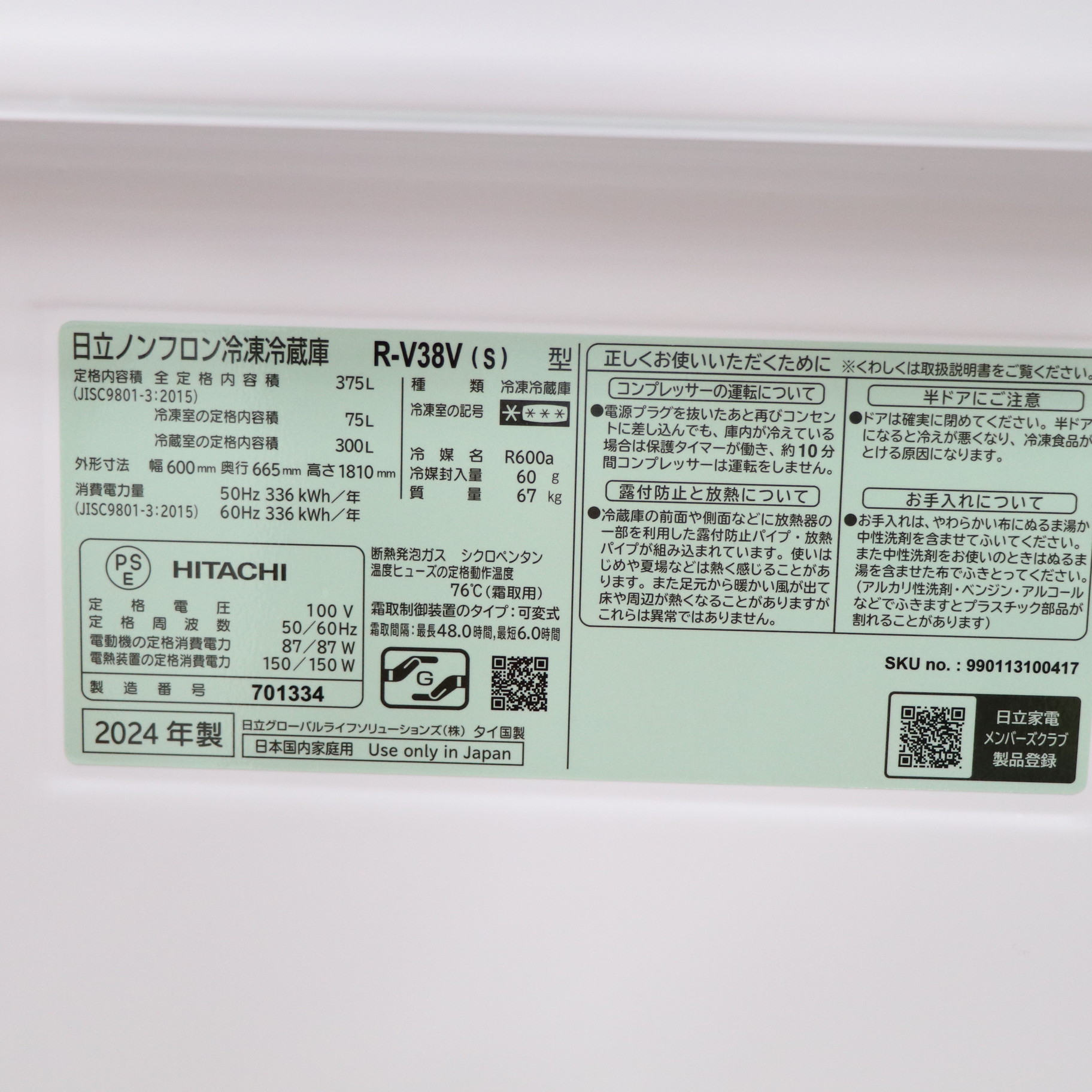 ▼同型番の新品商品はこちら![]() HITACHI(日立) 冷蔵庫 Vタイプ グラファイトシルバー R-V38V-S [幅60cm /375L /3ドア /右開きタイプ] 【基本設置料金セット】 ¥139,800(税込) 0ポイントサービス 在庫限り |
