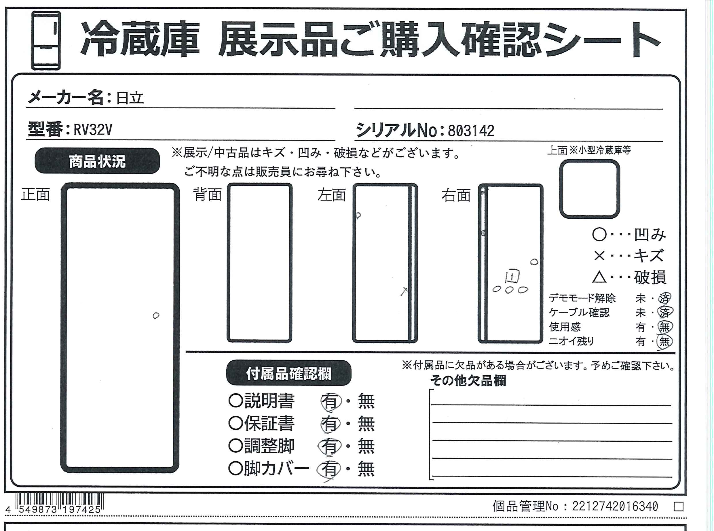 中古商品ランクについて 付属品・商品状態について 〔付属品〕説明書、調節脚X2、脚カバー、小物ケース、卵スタンド、給水タンク、製氷スコップ、蒸発皿