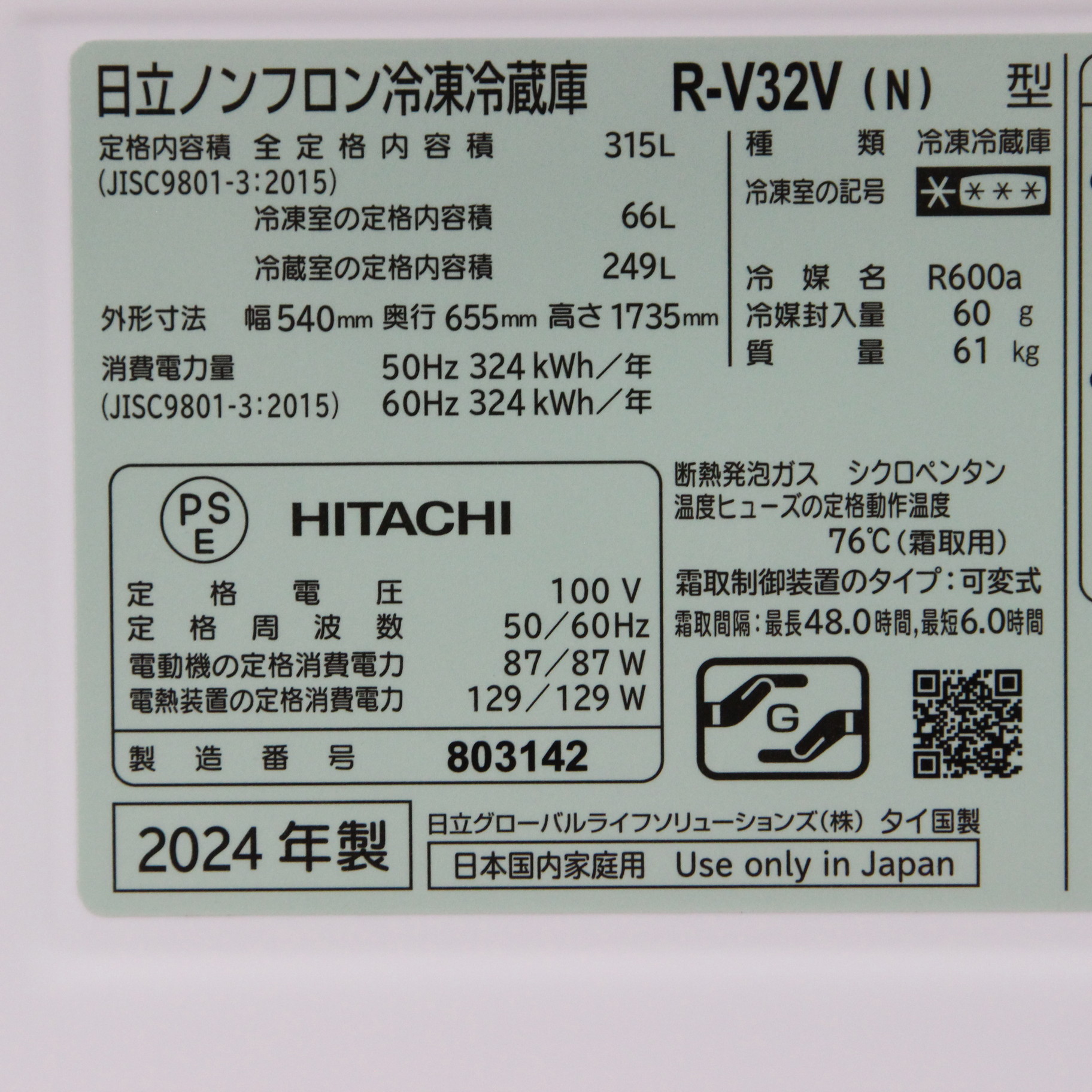 〔展示品〕 冷蔵庫 Vタイプ ライトゴールド R-V32V-N [幅54cm /315L /3ドア /右開きタイプ /2024年]