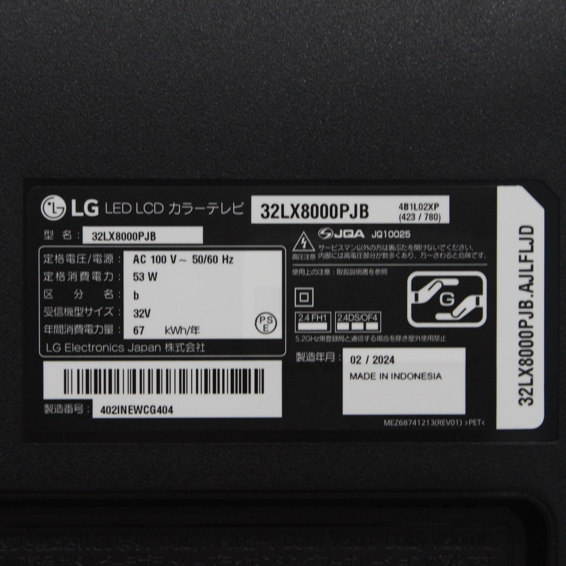 〔展示品〕 液晶テレビ 32LX8000PJB [32V型 /Bluetooth対応 /フルハイビジョン /YouTube対応]