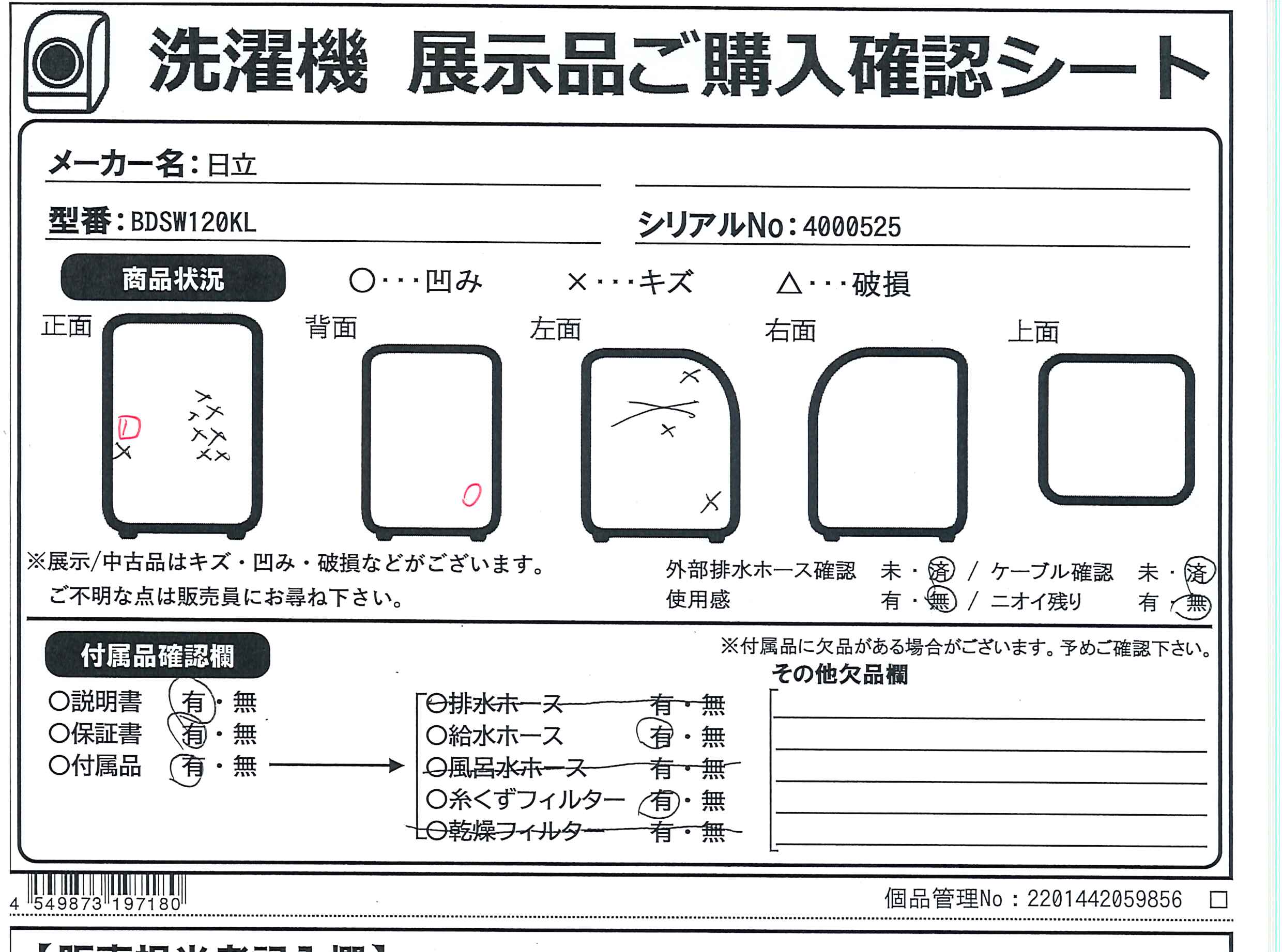 中古商品ランクについて 付属品・商品状態について 〔付属品〕取扱説明書、お困りコンシェルジュ、据付説明書、給水ホース、カバー×2、輸送用ボルト×2