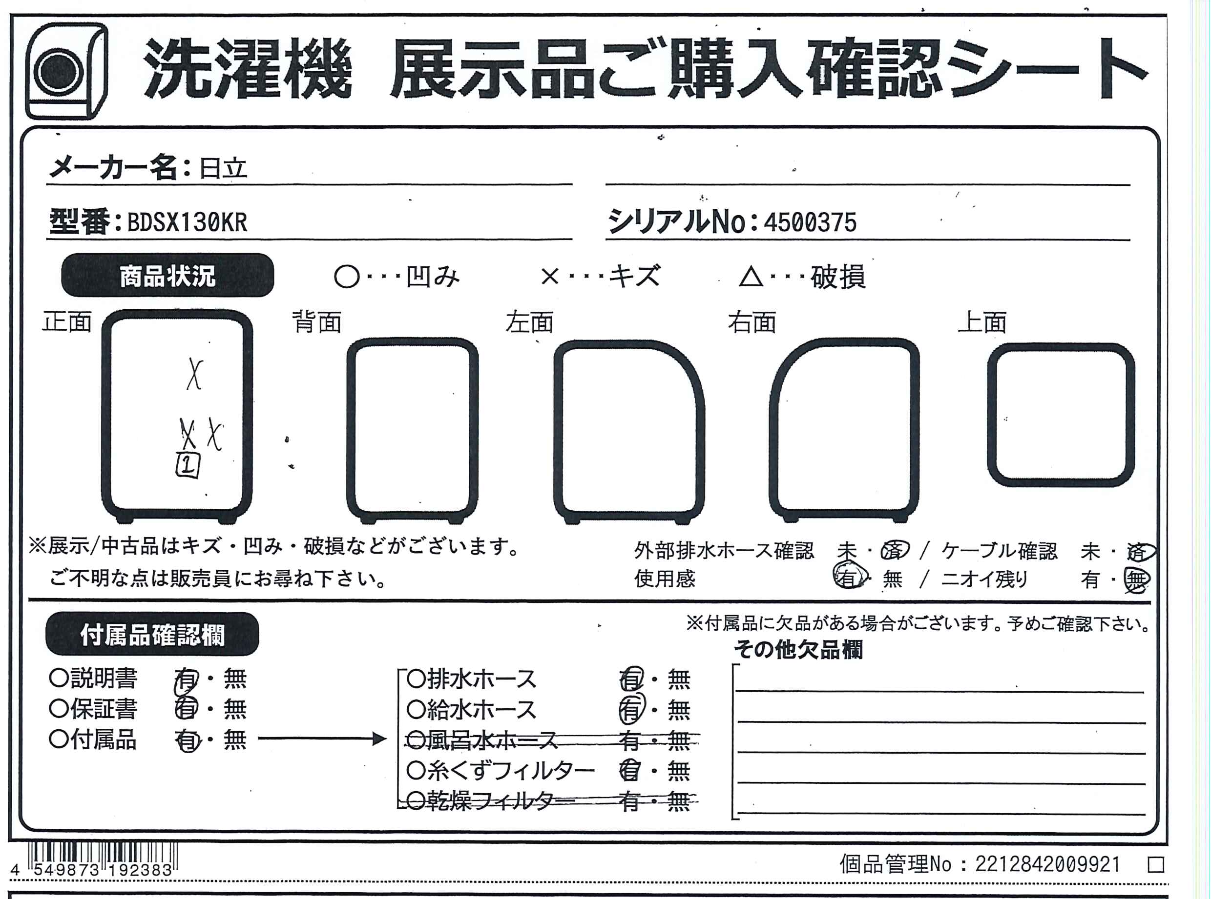 破損などがあり、一部の動作・機能に支障のある商品です。