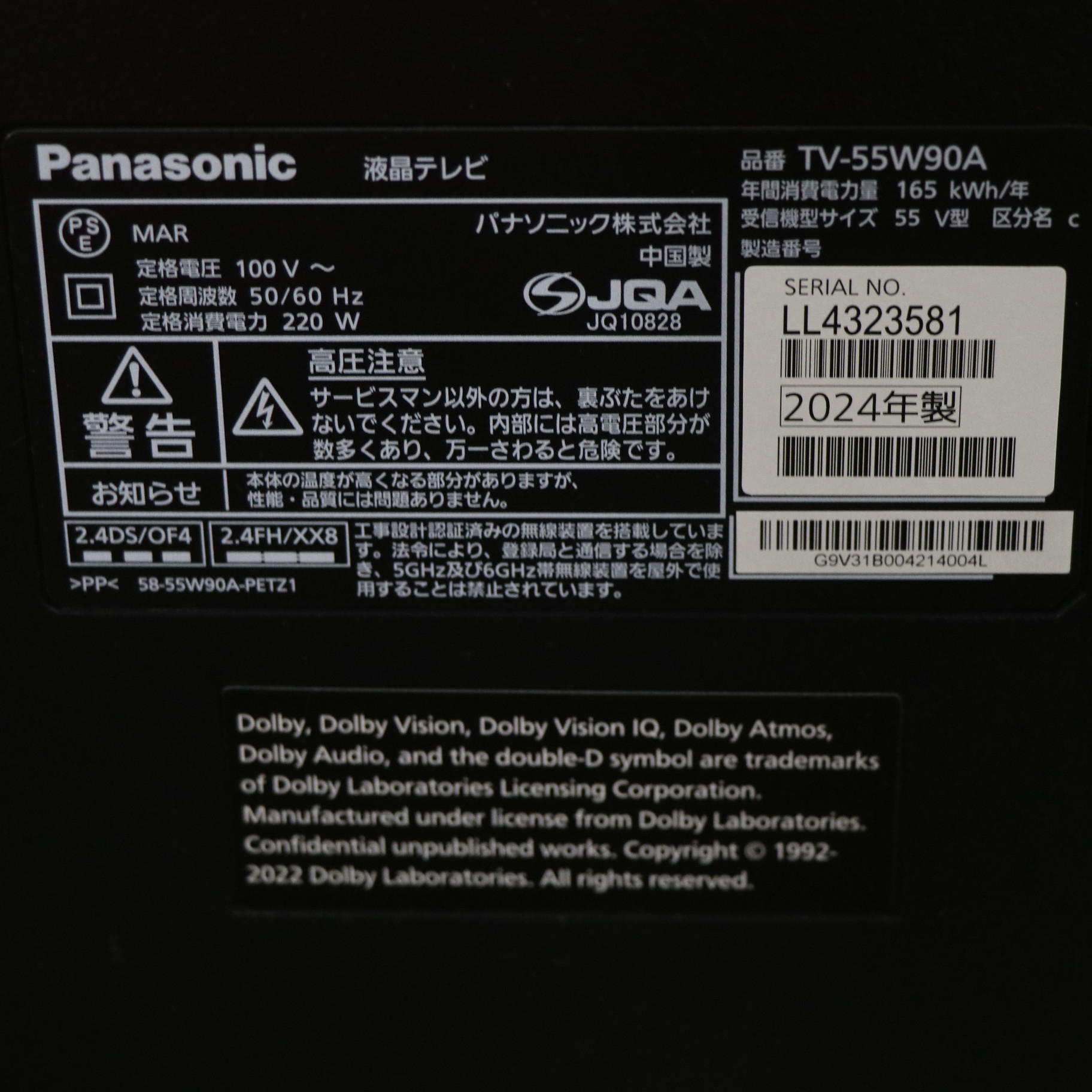 〔展示品〕 液晶テレビ VIERA(ビエラ) TV-55W90A [55V型 /Bluetooth対応 /4K対応 /YouTube対応]