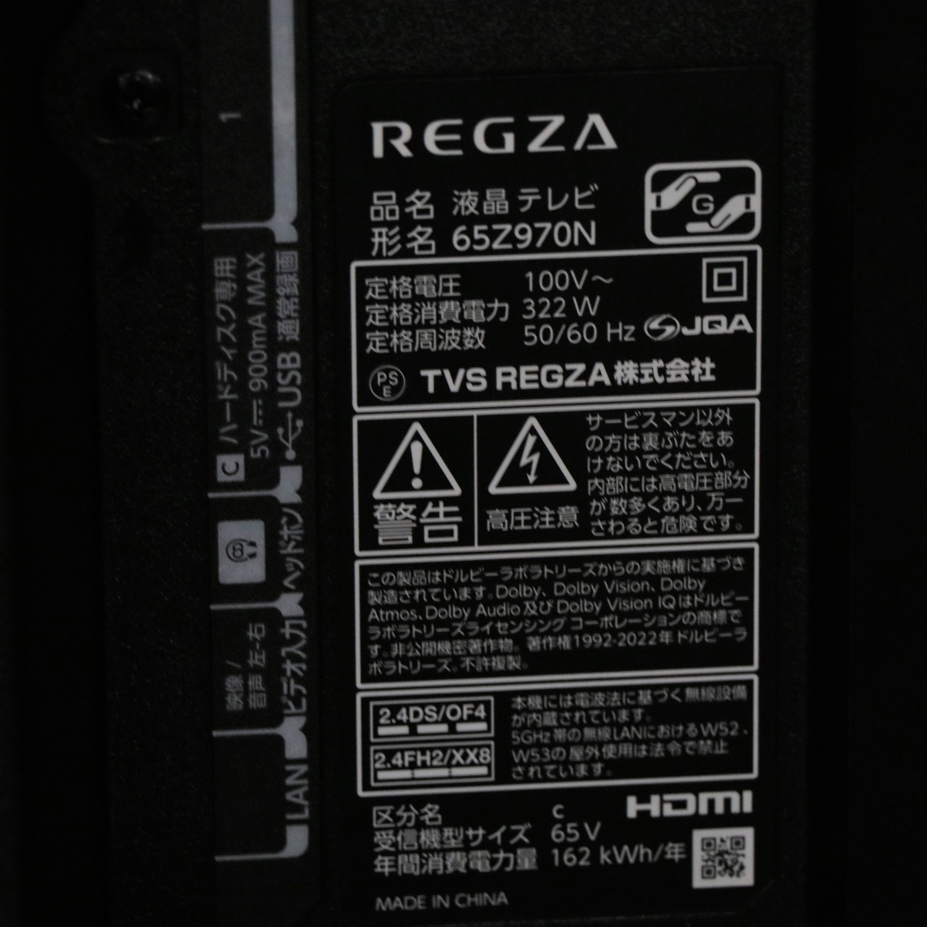〔展示品〕 液晶テレビ REGZA(レグザ) 65Z970N [65V型 /Bluetooth対応 /4K対応 /BS・CS 4Kチューナー内蔵 /YouTube対応]