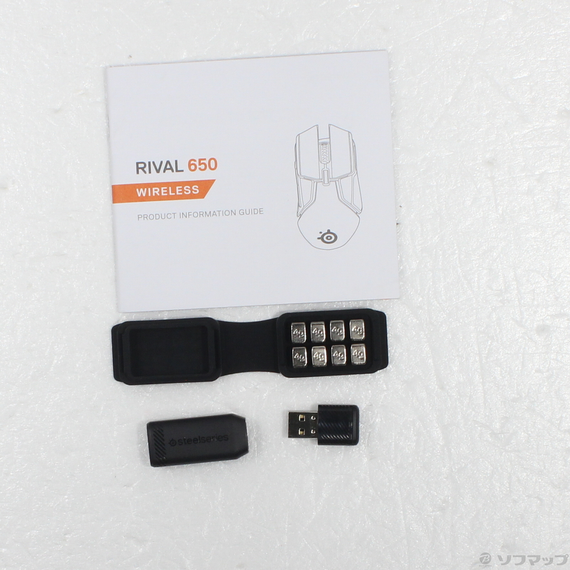 ◆パッケージ内容:Rival 650 本体、製品情報ガイド、取り外し可能USB充電ケーブル、USBトランスミッター、延長ケーブルアダプター、ウェイトボックス(8個の重り[1個4g])