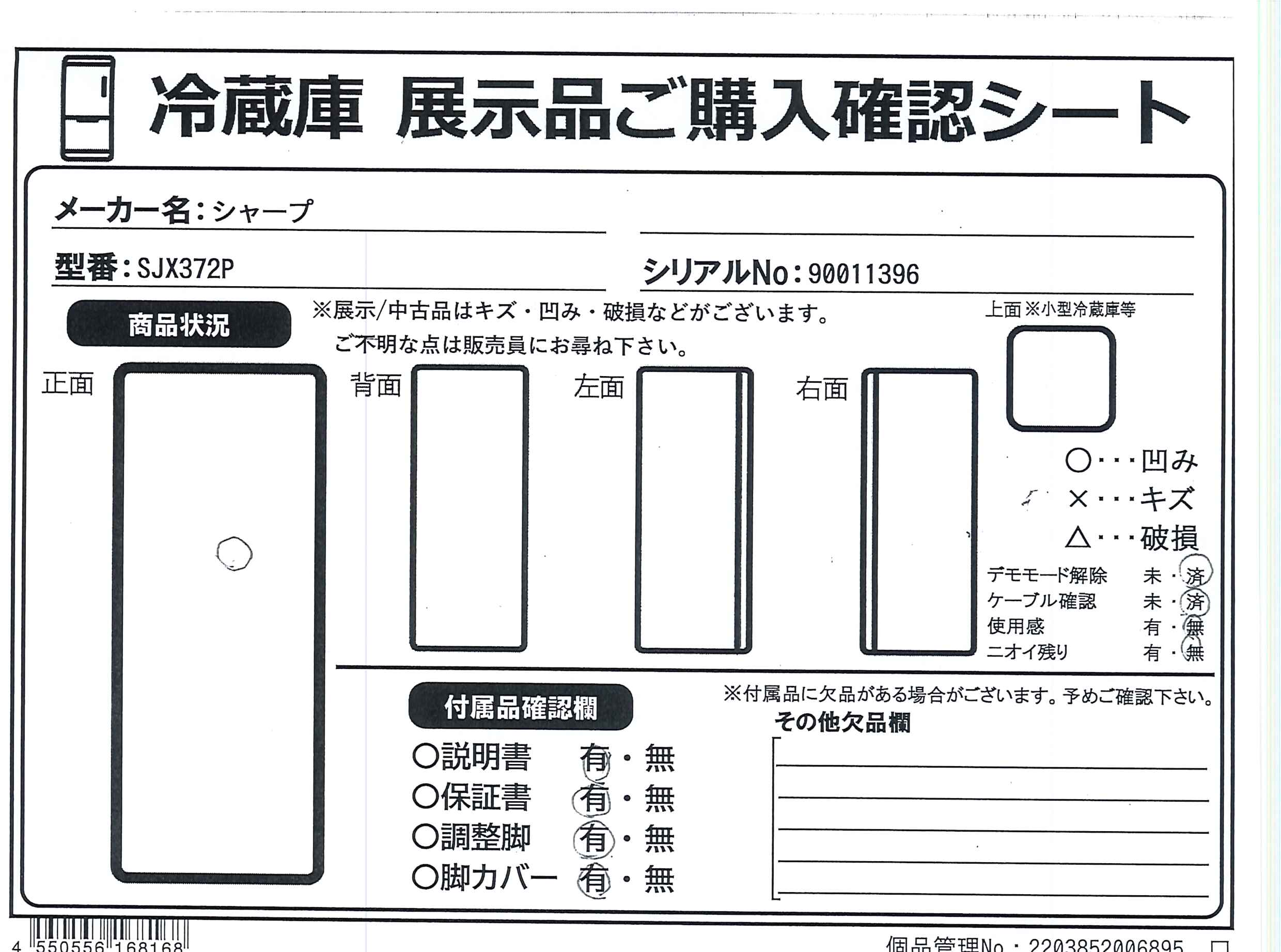 中古商品ランクについて 付属品・商品状態について 〔付属品〕取扱説明書、調節脚×2、ベースカバー、たまご仕切り、製氷皿