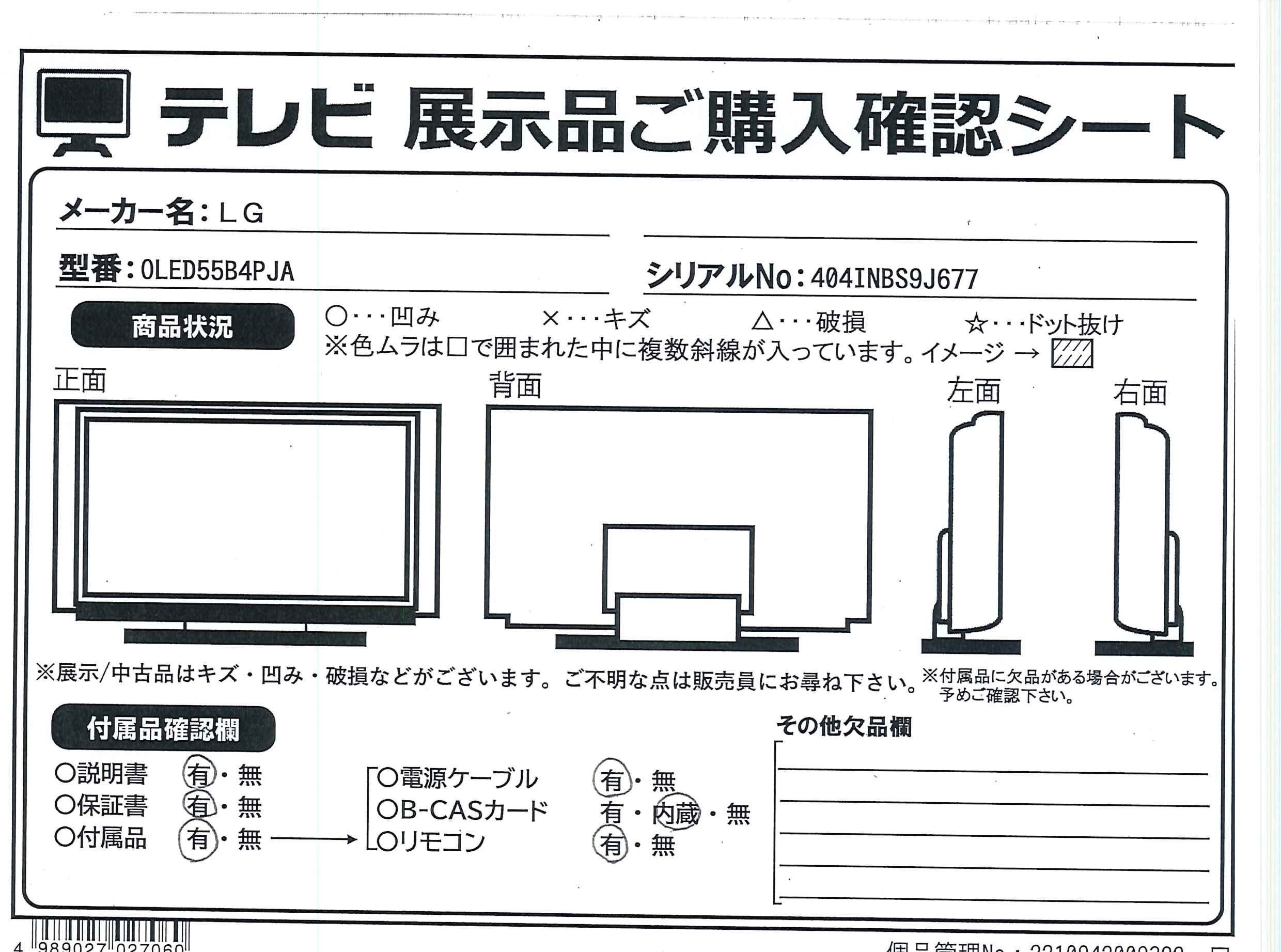 ![LG(エルジー) 有機ELテレビ OLED55B4PJA [55V型 /Bluetooth対応 /4K対応 /BS・CS 4Kチューナー内蔵 /YouTube対応]](https://image.sofmap.com/images/product/large/4989027027060.jpg)
