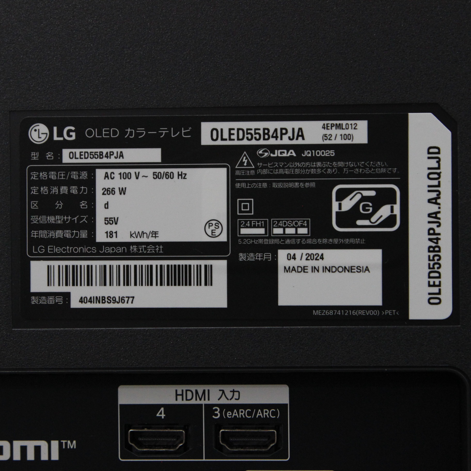 〔展示品〕 有機ELテレビ OLED55B4PJA [55V型 /Bluetooth対応 /4K対応 /BS・CS 4Kチューナー内蔵 /YouTube対応]