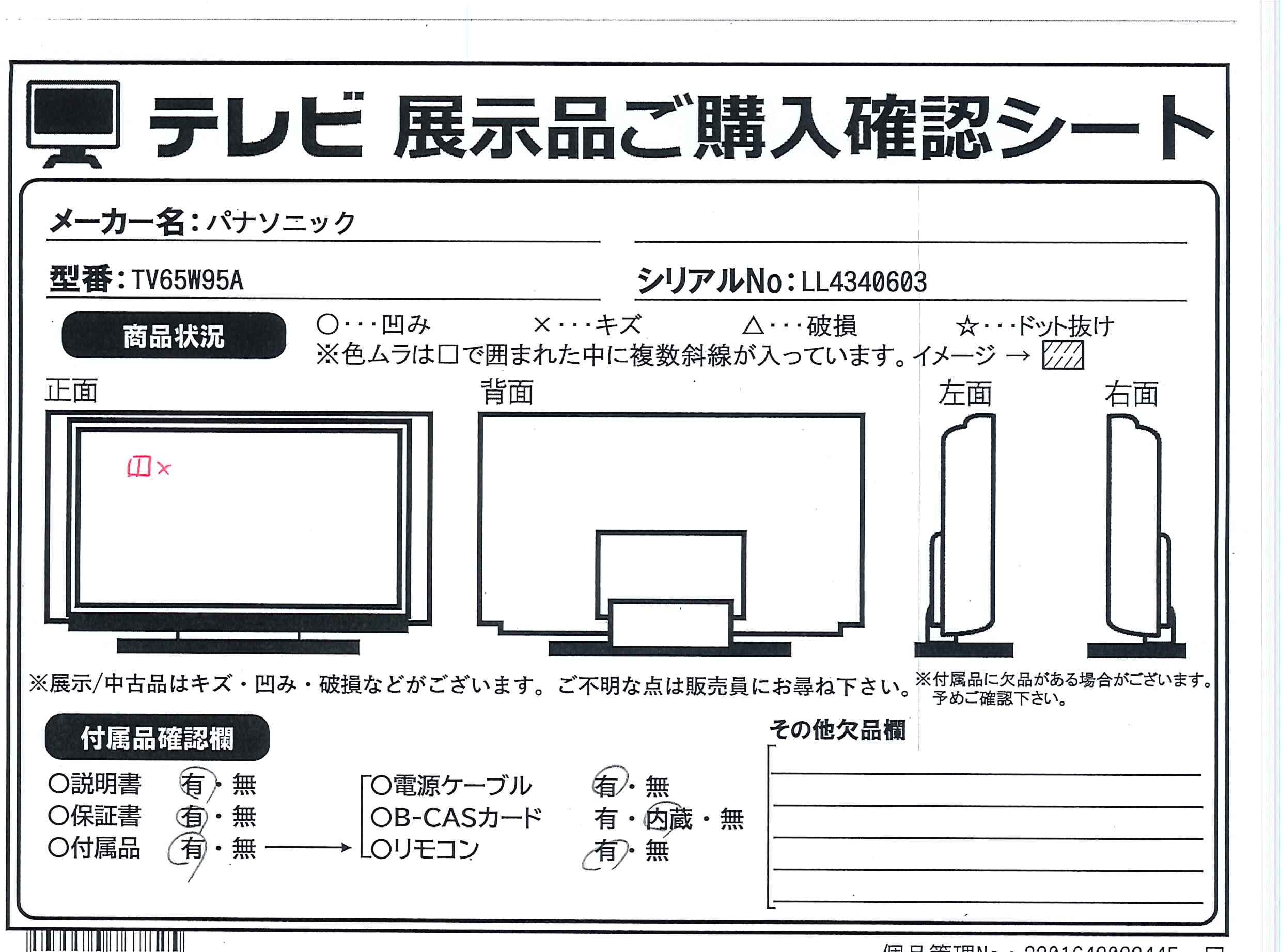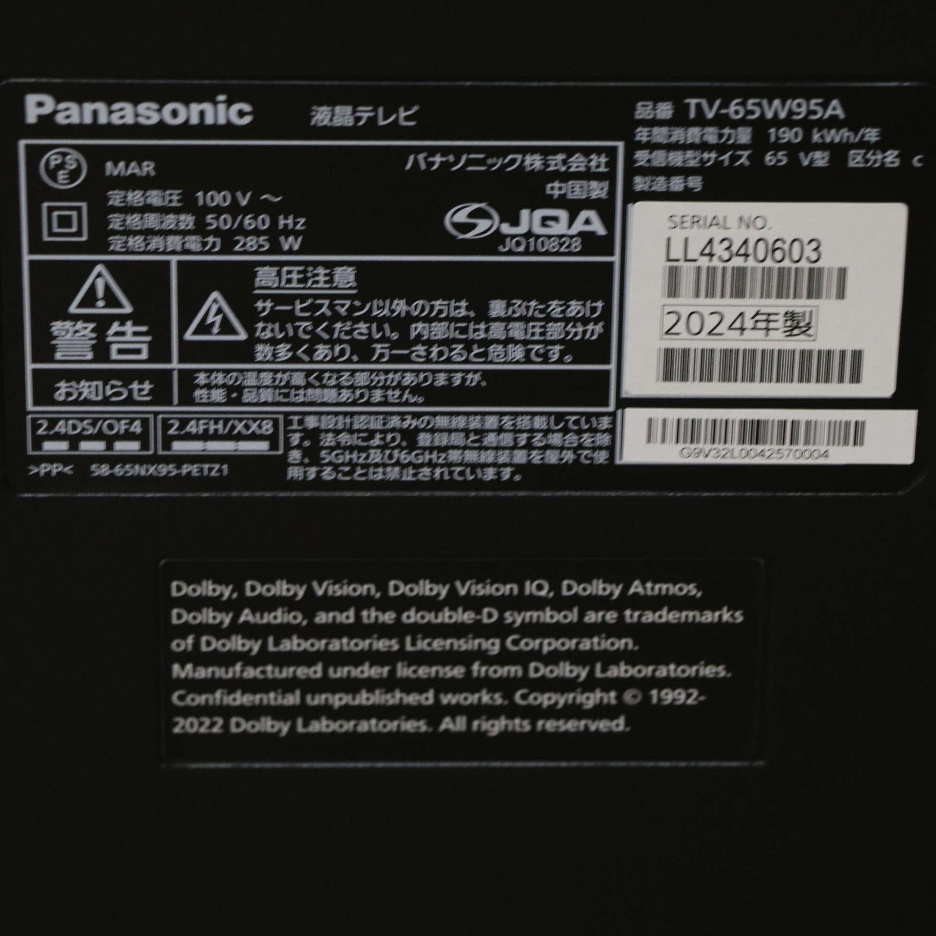 〔展示品〕 液晶テレビ VIERA(ビエラ) TV-65W95A [65V型 /Bluetooth対応 /4K対応 /YouTube対応]