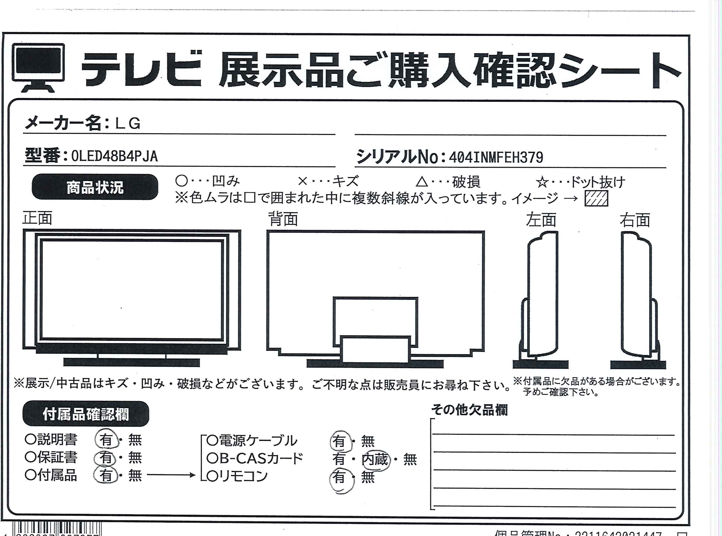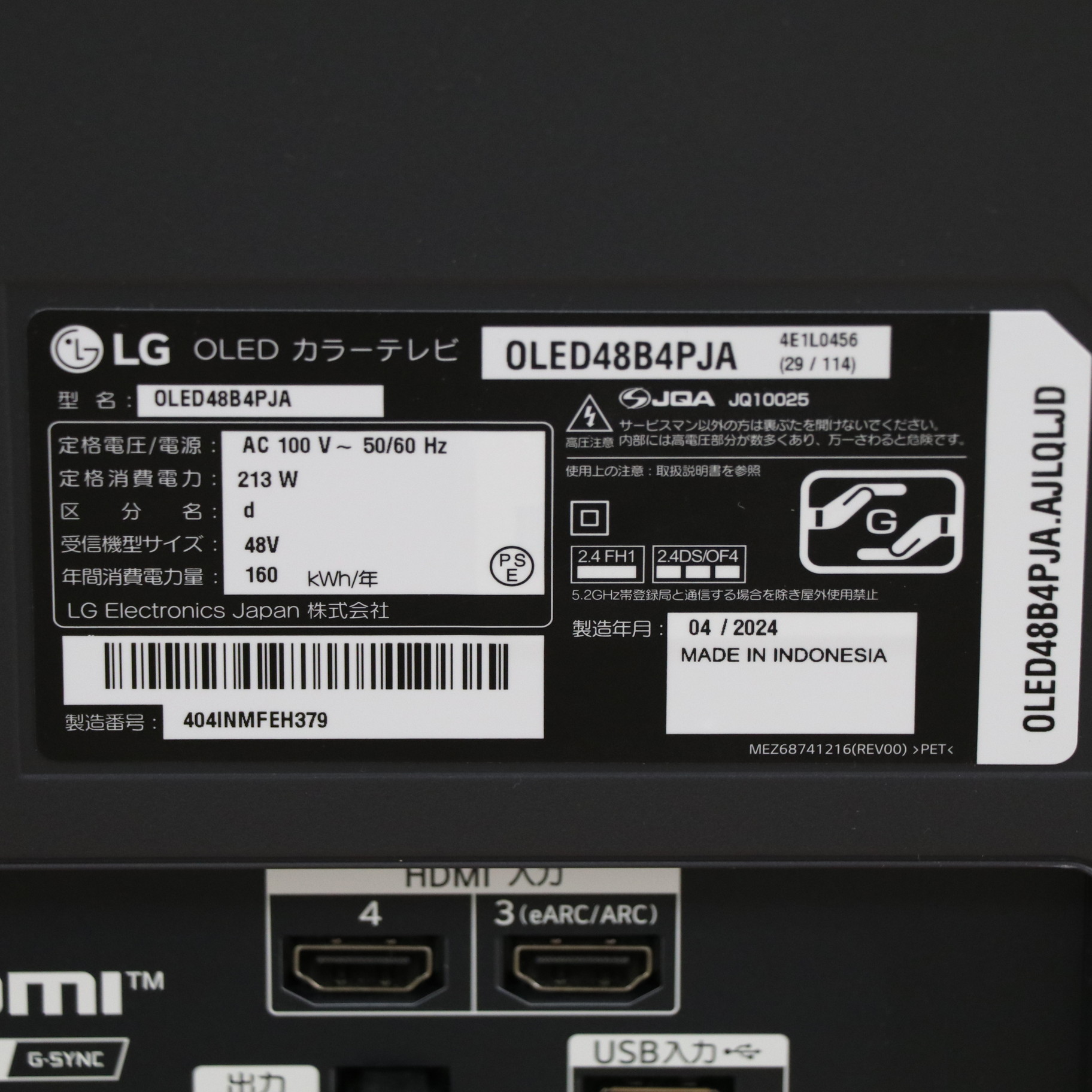 〔展示品〕 有機ELテレビ OLED48B4PJA [48V型 /Bluetooth対応 /4K対応 /BS・CS 4Kチューナー内蔵 /YouTube対応]