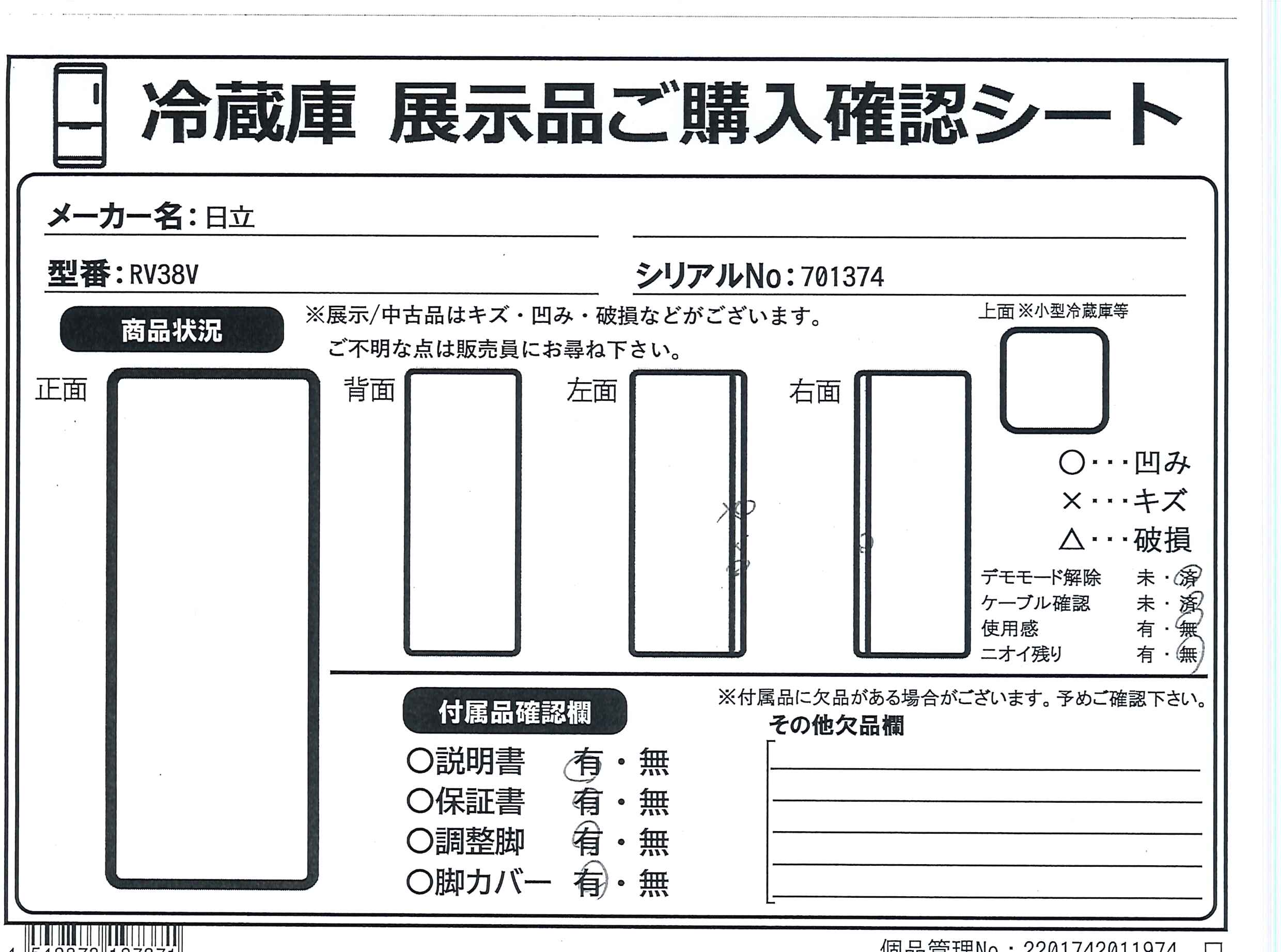 中古商品ランクについて 付属品・商品状態について 〔付属品〕説明書、調節脚×2、小物ケース、卵スタンド、給水タンク、脚カバー、製氷スコップ、蒸発皿