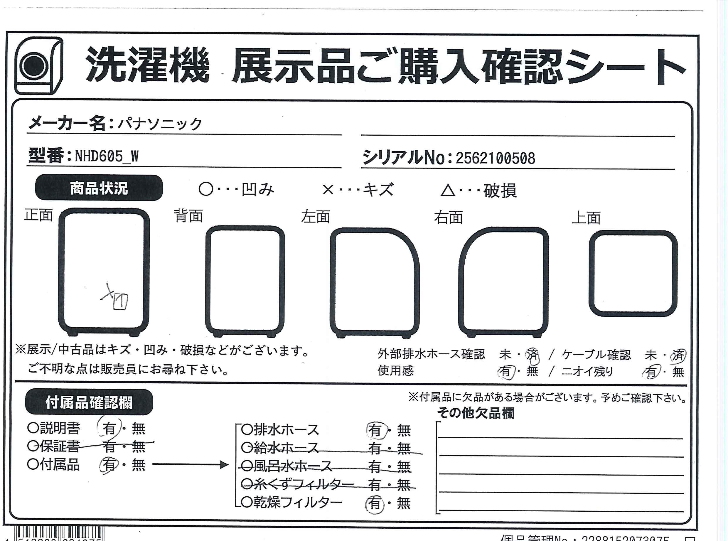 中古商品ランクについて 付属品・商品状態について 〔付属品〕取扱説明書、施工説明書、ユニット台取り付け用ネジ×4、排水ホース(ホースバンド付き)、排水パイプ、ホースホルダー