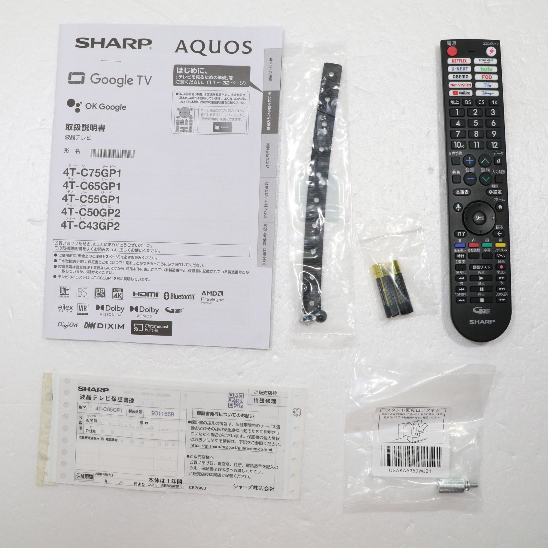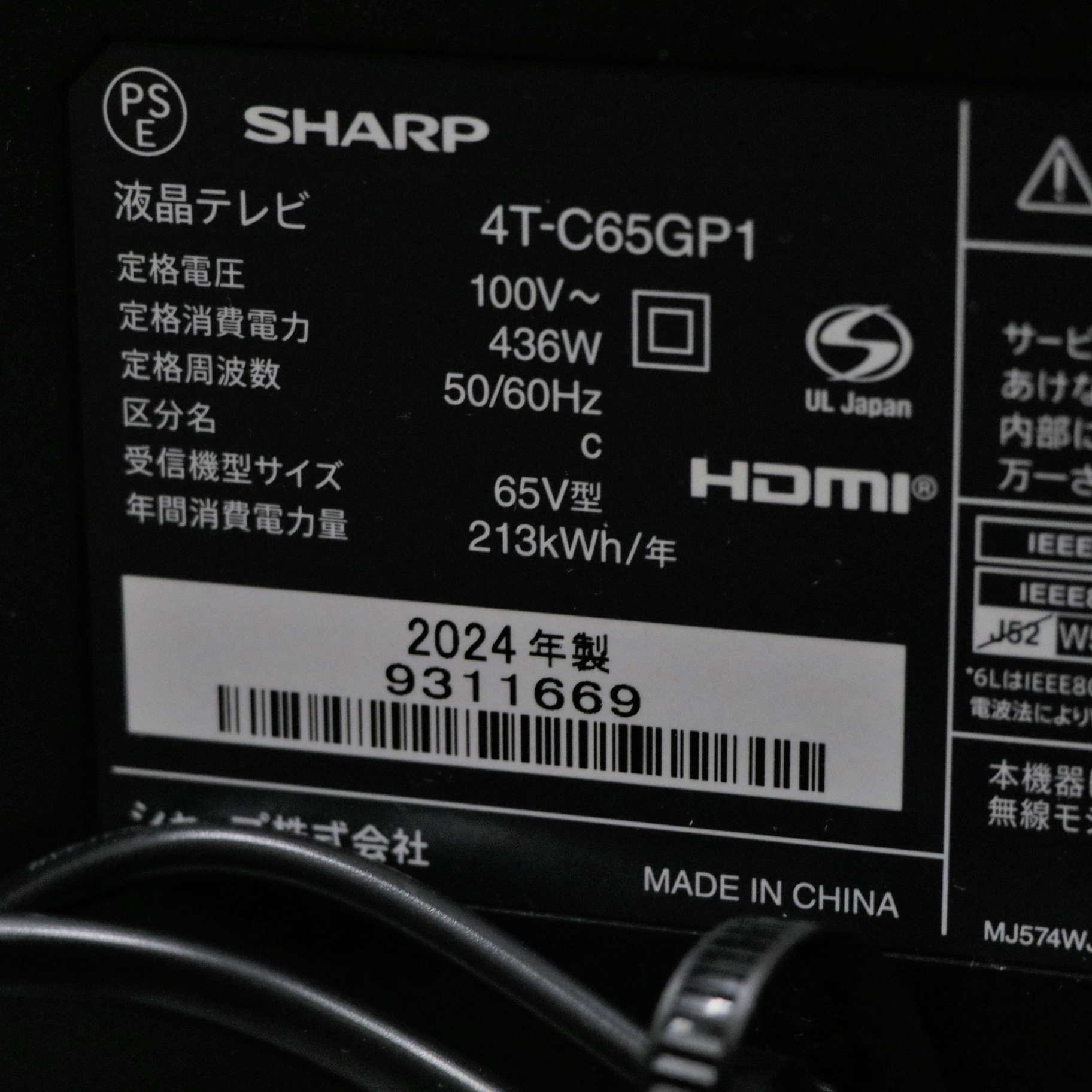 〔展示品〕 液晶テレビ AQUOS ブラック 4T-C65GP1 [65V型 /4K対応 /BS・CS 4Kチューナー内蔵 /YouTube対応]