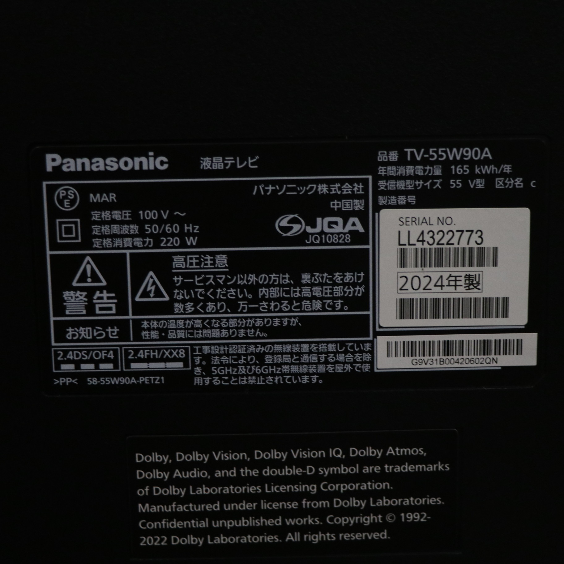 〔展示品〕 液晶テレビ VIERA(ビエラ) TV-55W90A [55V型 /Bluetooth対応 /4K対応 /YouTube対応]