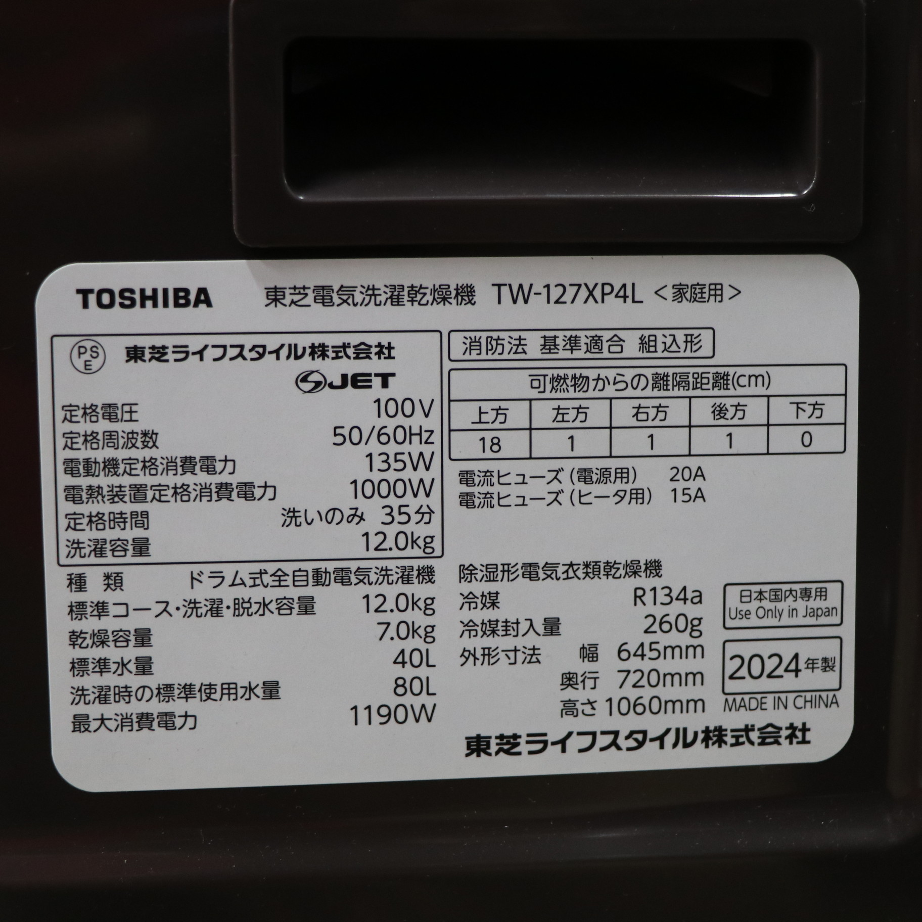 〔展示品〕 ドラム式洗濯乾燥機 ZABOON ボルドーブラウン TW-127XP4L(T) [洗濯12.0kg /乾燥7.0kg /ヒートポンプ乾燥 /左開き]