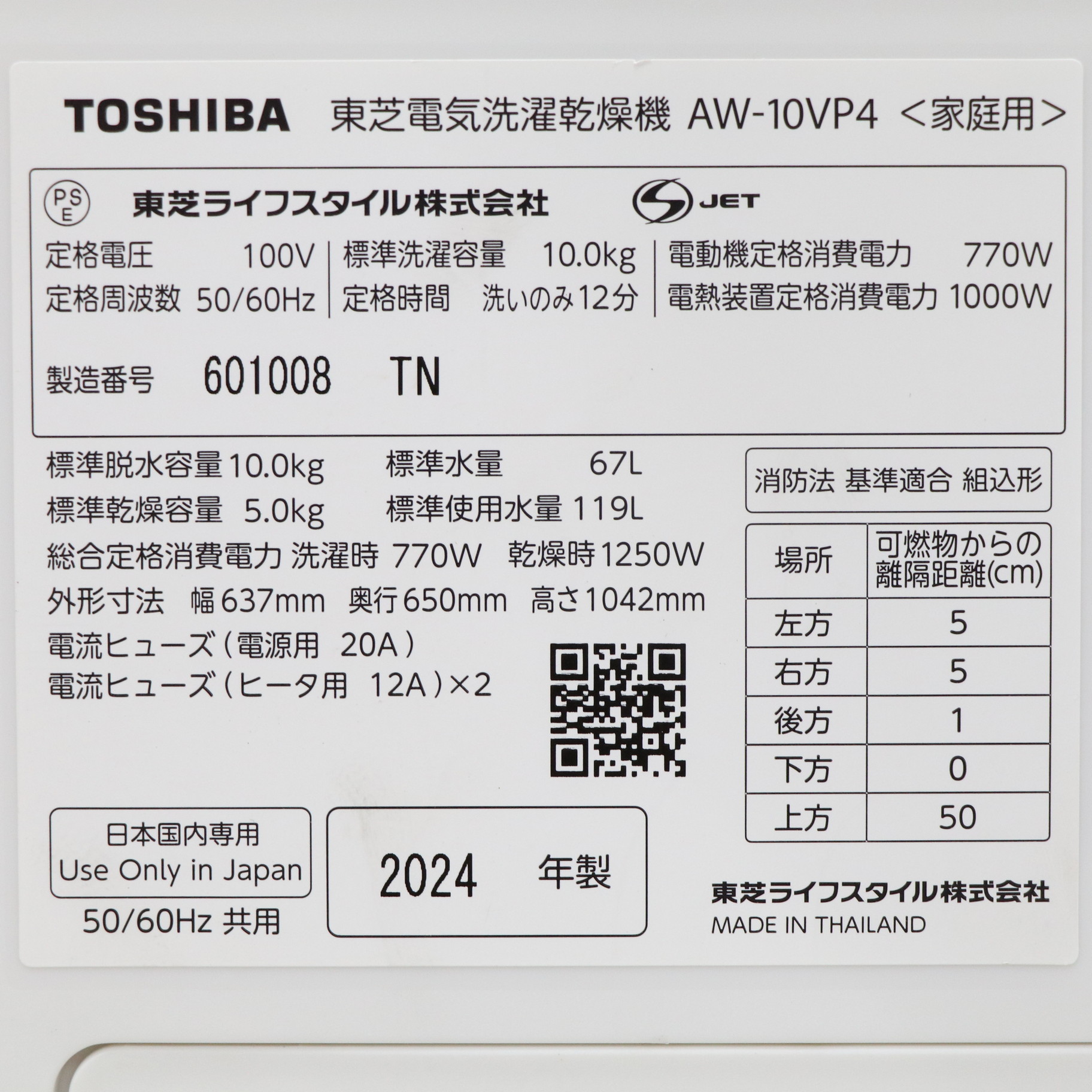 〔展示品〕 縦型洗濯乾燥機 ZABOON グランホワイト AW-10VP4(W) [洗濯10.0kg /乾燥5.0kg /ヒーター乾燥(水冷・除湿タイプ) /上開き]