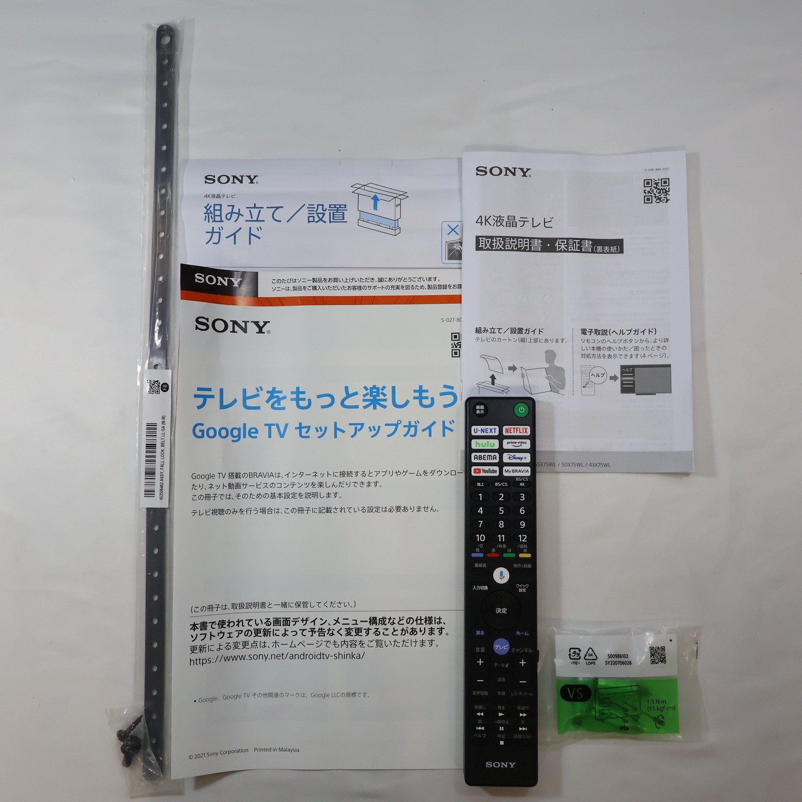 中古商品ランクについて 付属品・商品状態について 〔付属品〕説明書、組み立て/設置ガイド、製品登録のおすすめ、Google TVセットアップガイド、リモコン、スペーサー(VSのネジ)、転倒防止バンド・取付ネジ