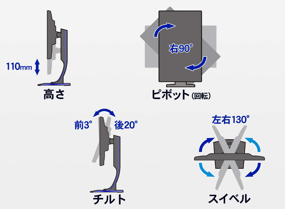 本商品は「ゲーミングスタンド」を採用!見やすい位置に高さや角度を調整することで、目や肩の疲れやストレートネック対策の一つとしても効果的です。お好みの姿勢をとれるので、ゲームや動画を見たりと長時間ディスプレイに集中しやすくなります。