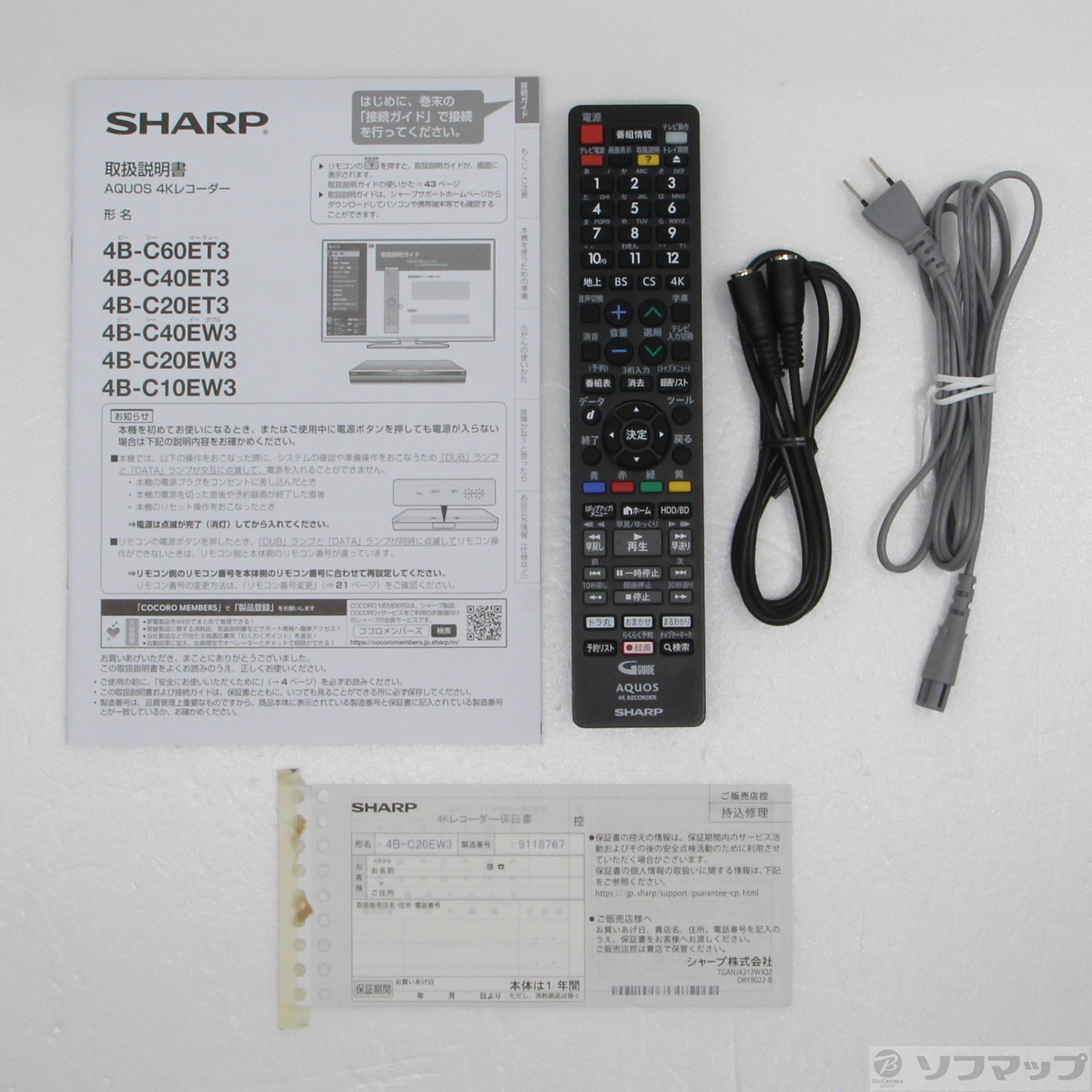 〔展示品〕 ブルーレイレコーダー AQUOSブルーレイ 4B-C20EW3 [2TB /2番組同時録画 /BS・CS 4Kチューナー内蔵]