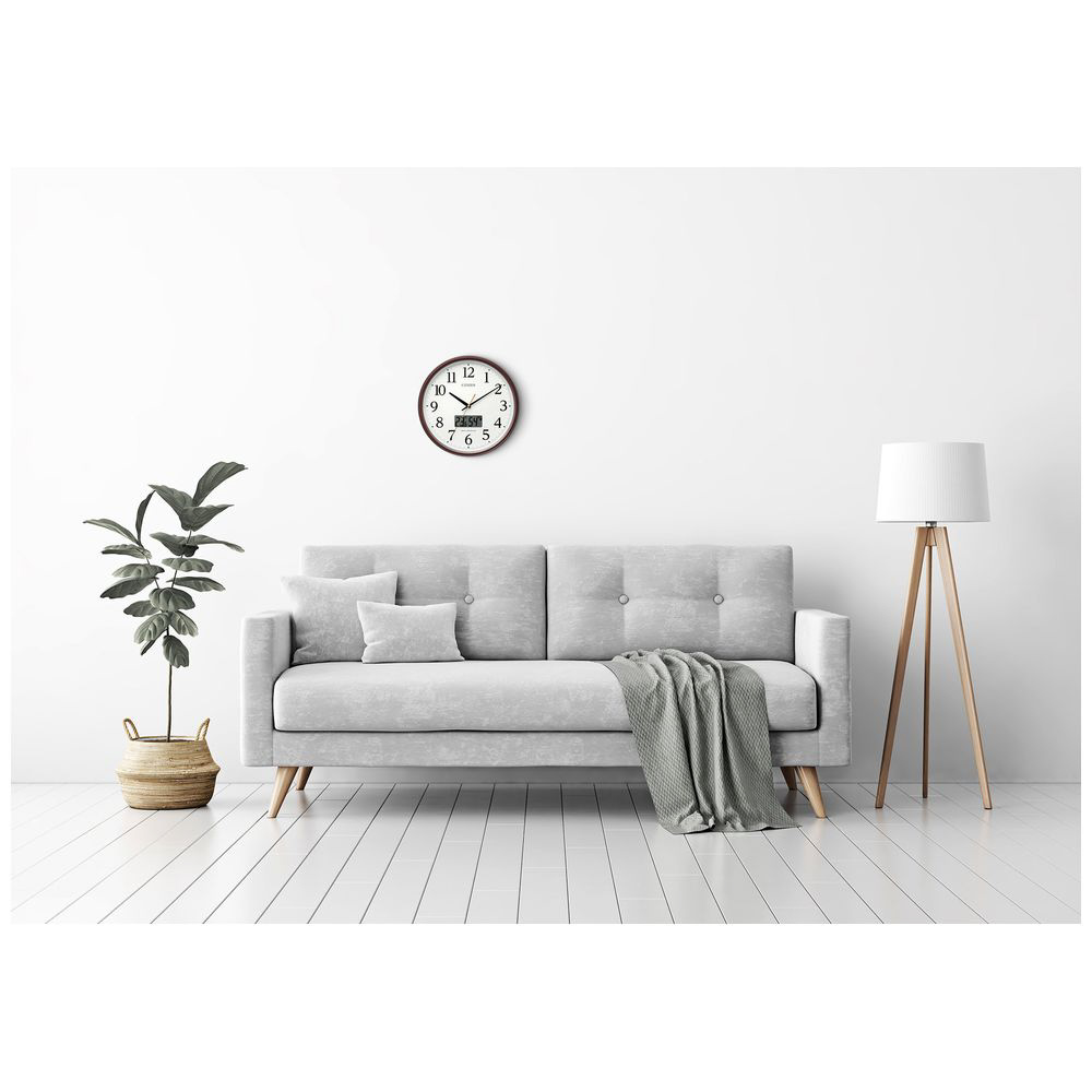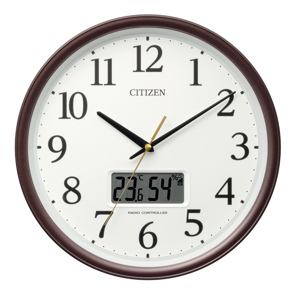 未使用品 時間が見やすく温度・湿度もわかる 液晶付きの電波掛時計 茶メタリック色 8FYA05-006 [電波自動受信機能有] 〔箱破損品〕