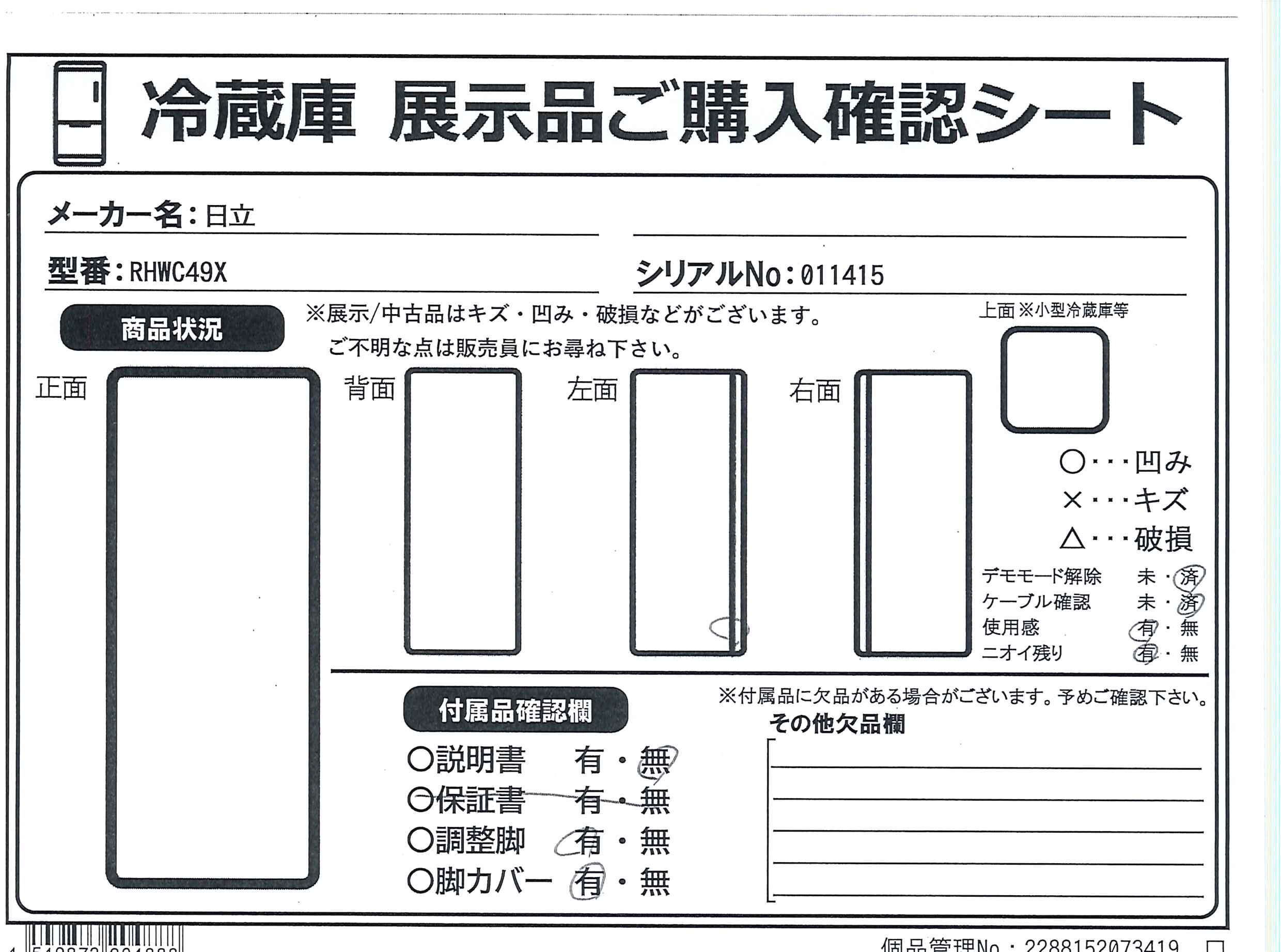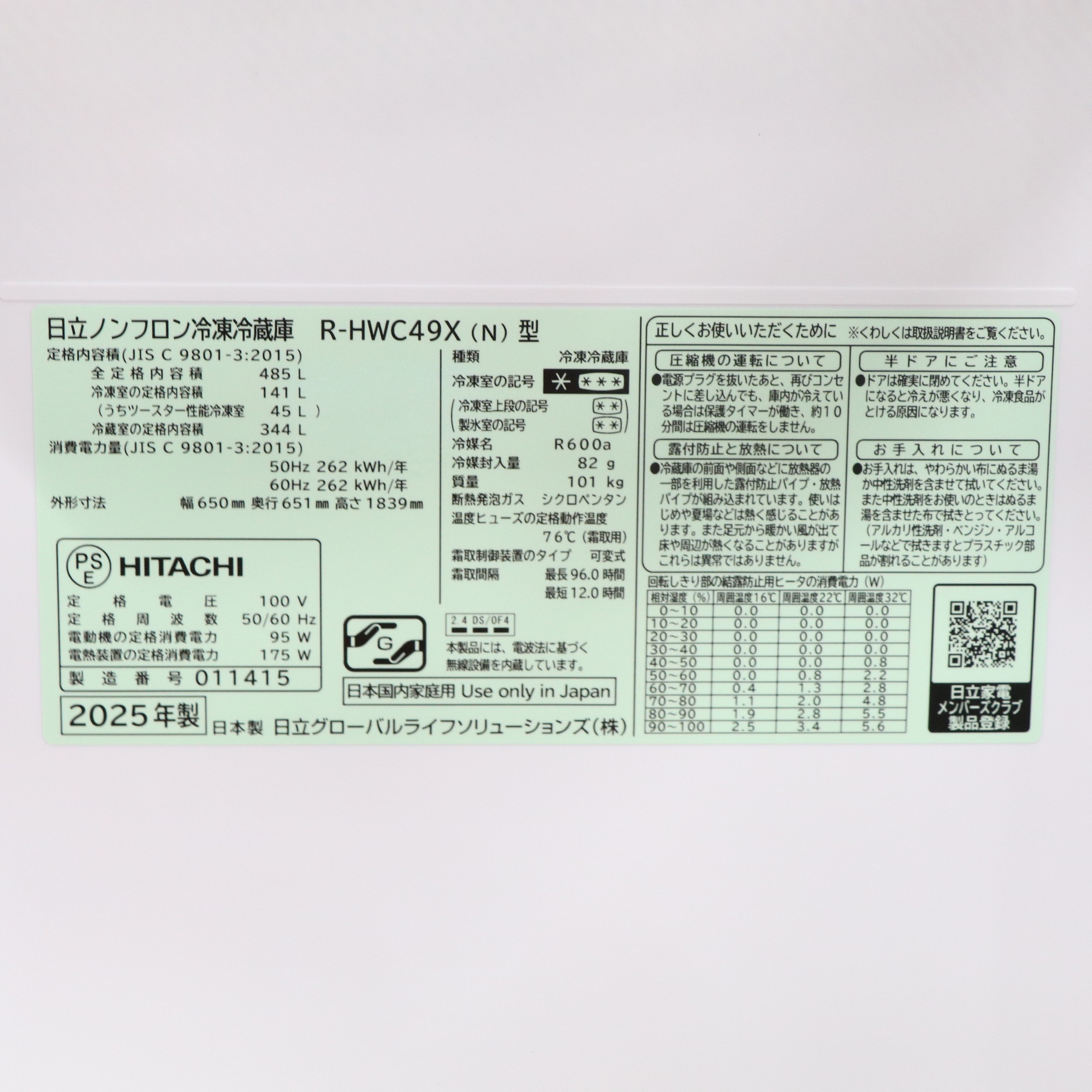 ▼同型番の新品商品はこちら![]() HITACHI(日立) 冷蔵庫 HWCタイプ ライトゴールド R-HWC49X_N [幅65cm /485L /6ドア /観音開きタイプ /2025年]【基本設置料金セット】 ¥244,645(税込) 2,447ポイントサービス 在庫あり |