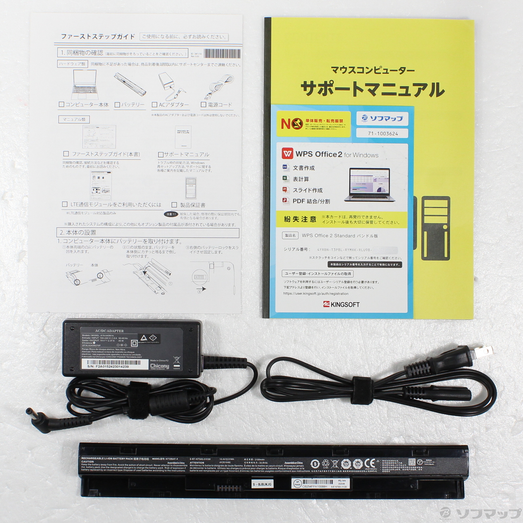 中古商品ランクについて 付属品・商品状態について 〔付属品〕ACアダプター(本体用)、電源コード、バッテリー、WPS Office2