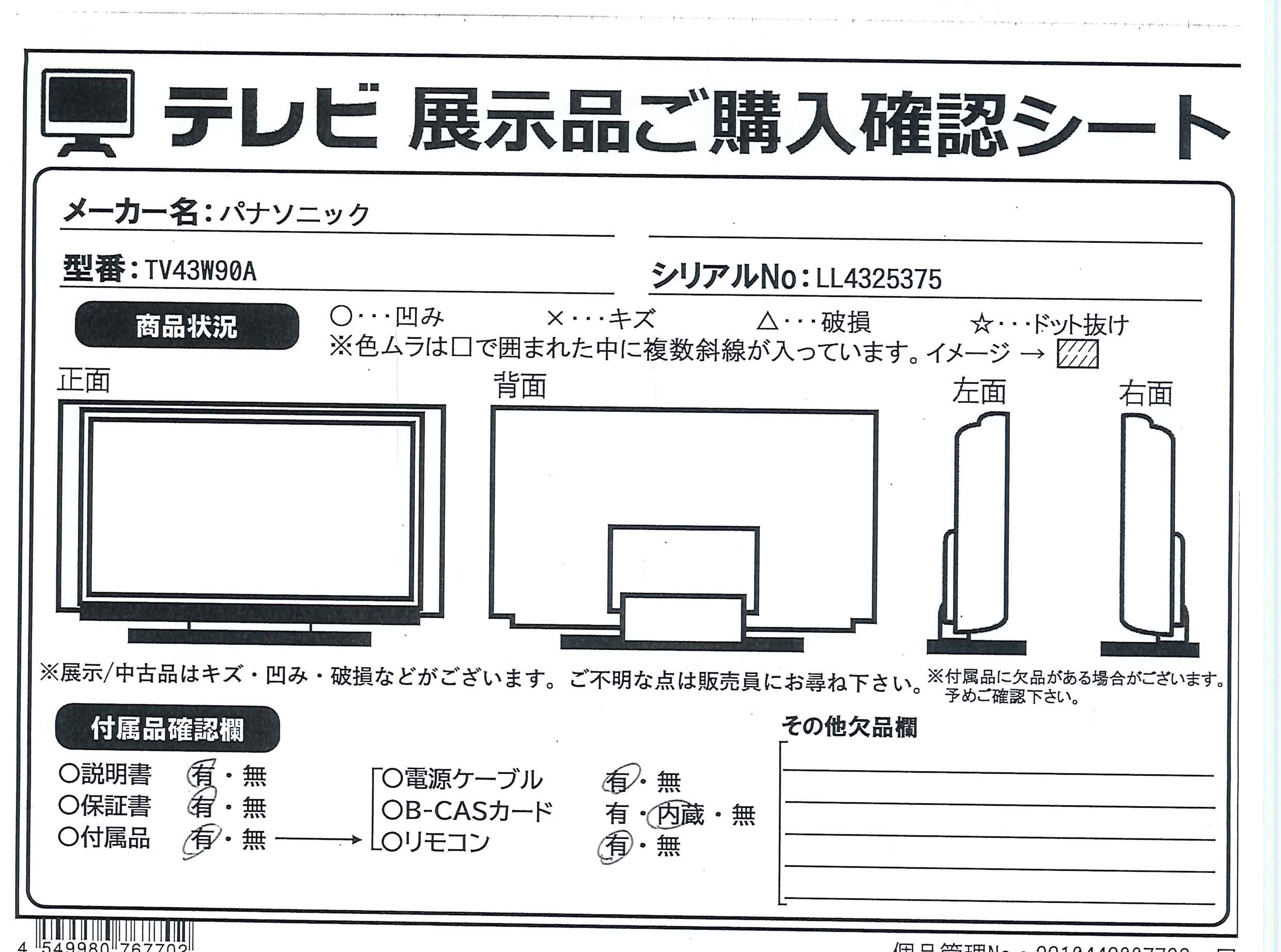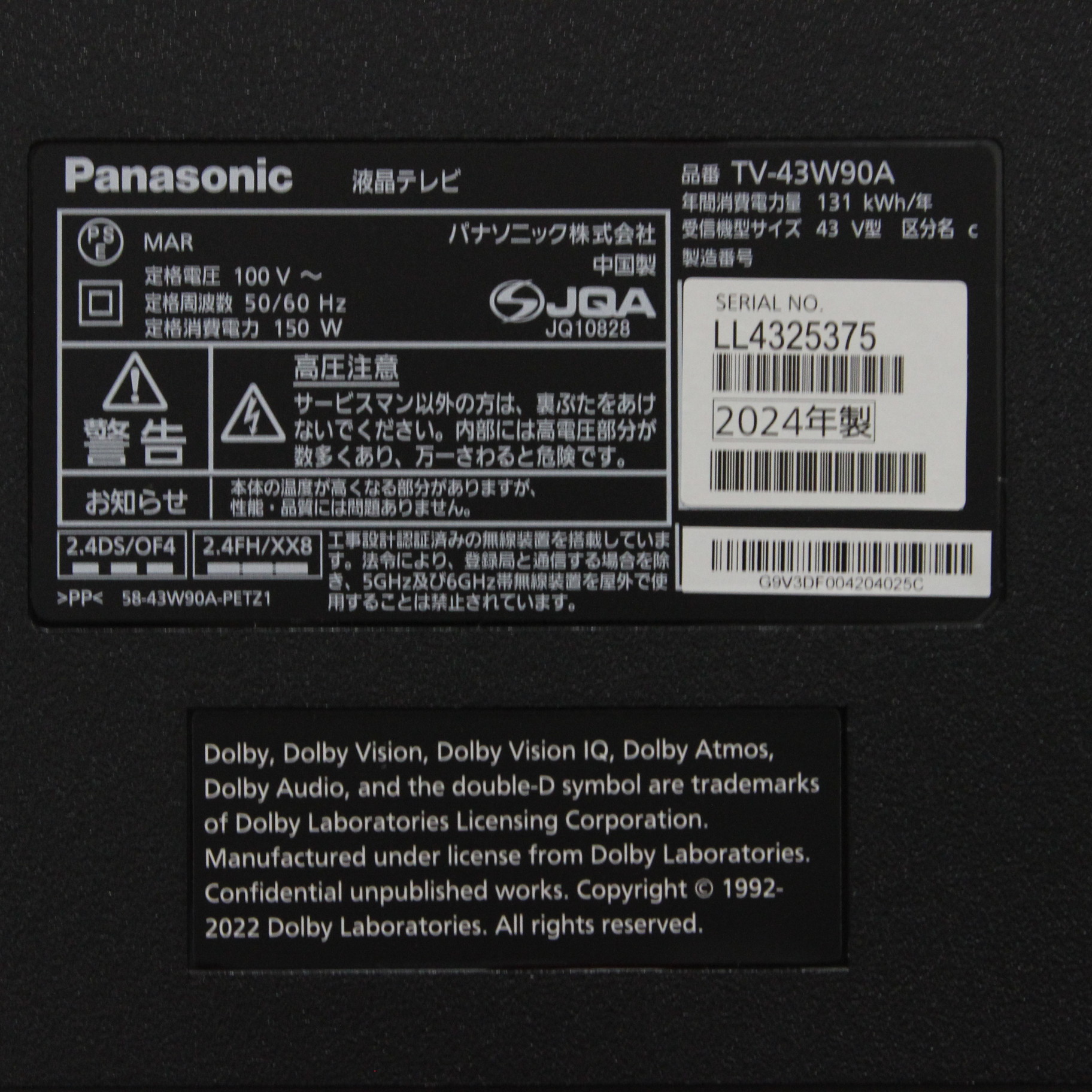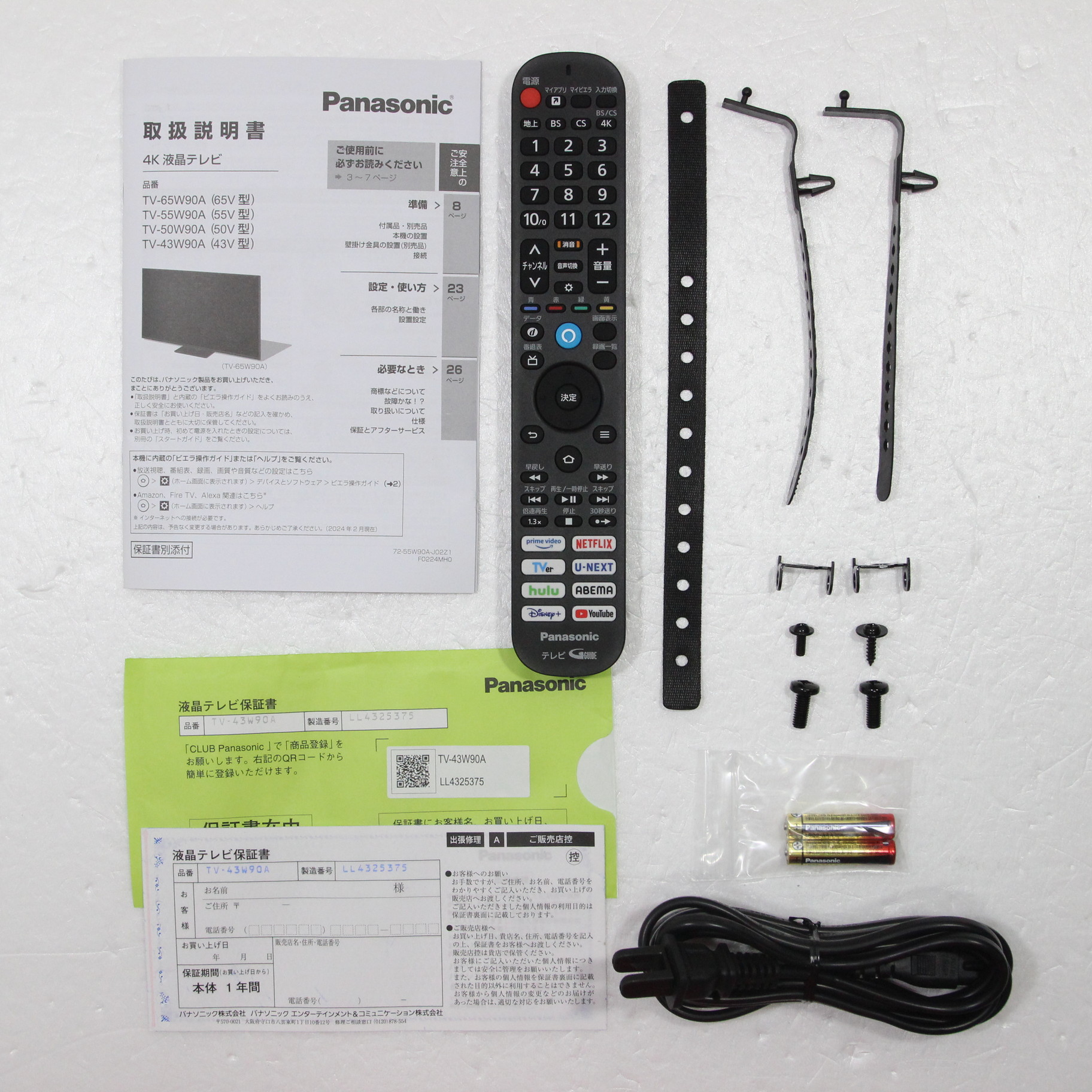 〔展示品〕 液晶テレビ VIERA(ビエラ) TV-43W90A [43V型 /Bluetooth対応 /4K対応 /YouTube対応]