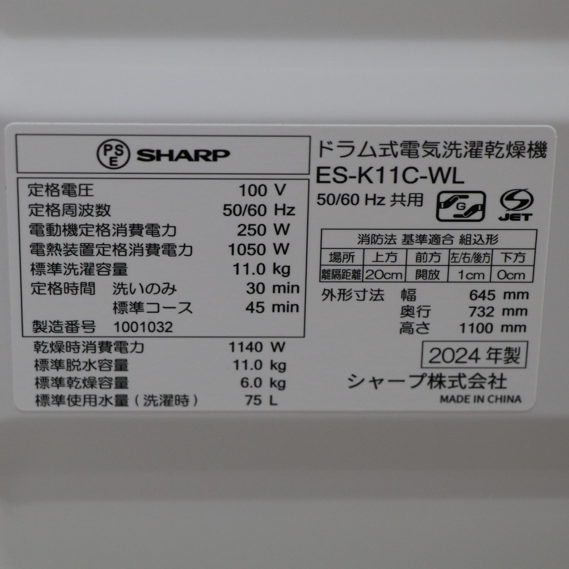 〔展示品〕 ドラム式洗濯機 クリスタルホワイト ES-K11C-WL [洗濯11.0kg /乾燥6.0kg /ヒーター乾燥(水冷・除湿タイプ) /左開き]