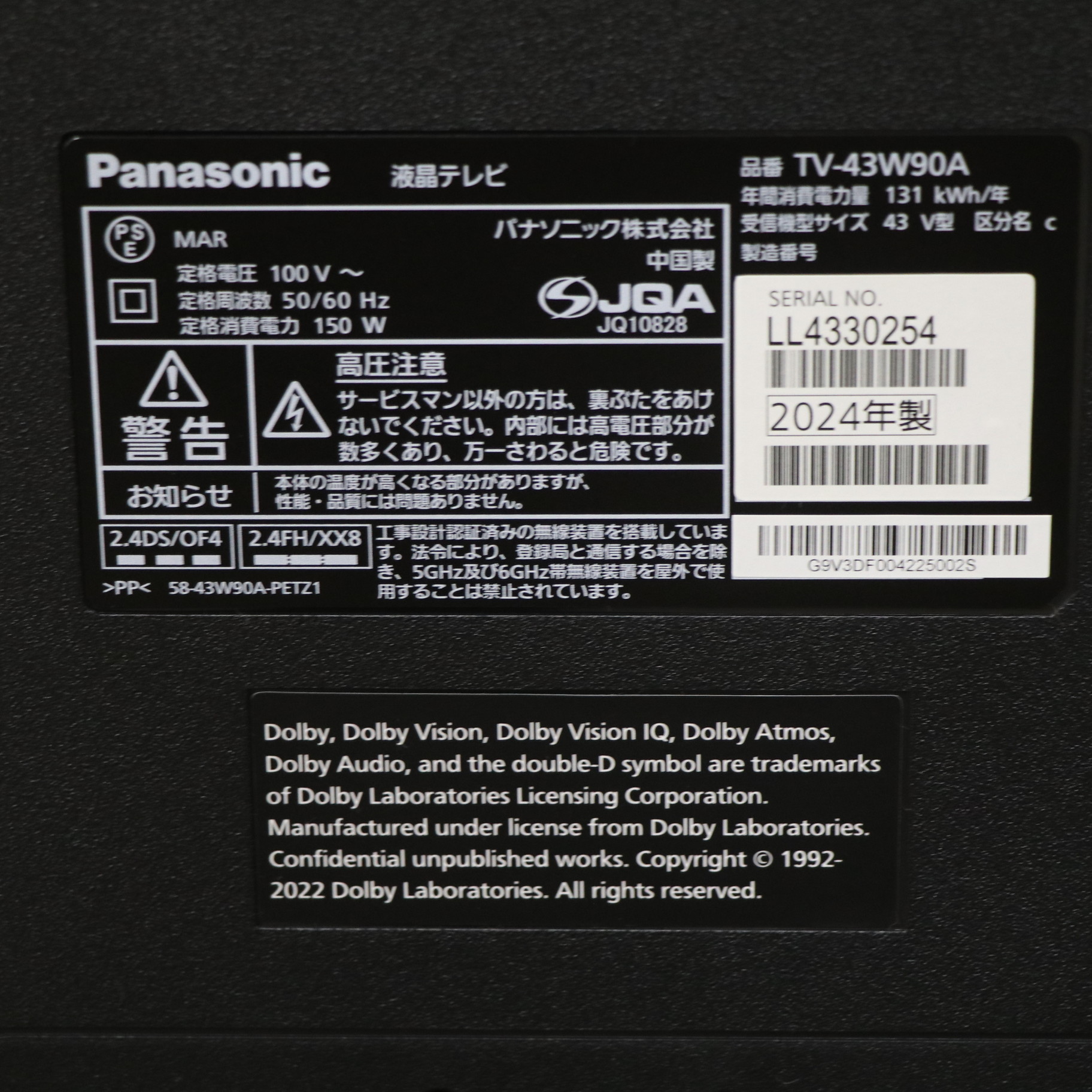 〔展示品〕 液晶テレビ VIERA(ビエラ) TV-43W90A [43V型 /Bluetooth対応 /4K対応 /YouTube対応]