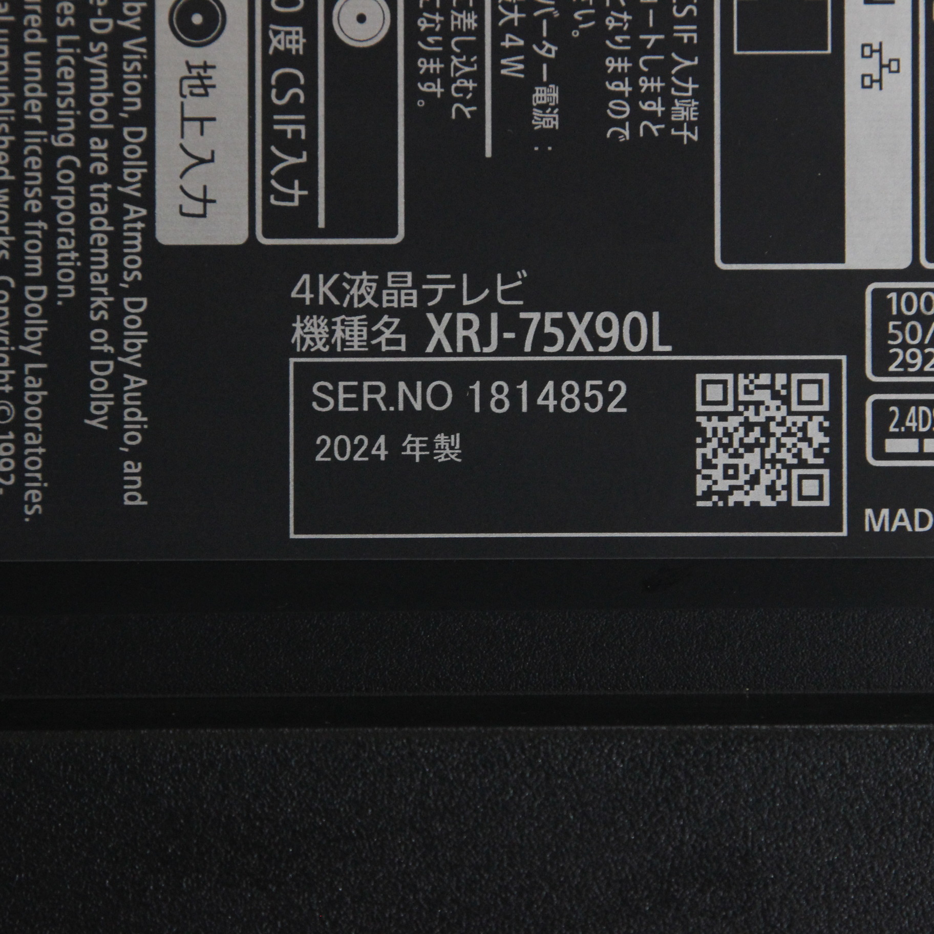 〔展示品〕 液晶テレビ BRAVIA(ブラビア) XRJ-75X90L [75V型 /Bluetooth対応 /4K対応 /BS・CS 4Kチューナー内蔵 /YouTube対応]