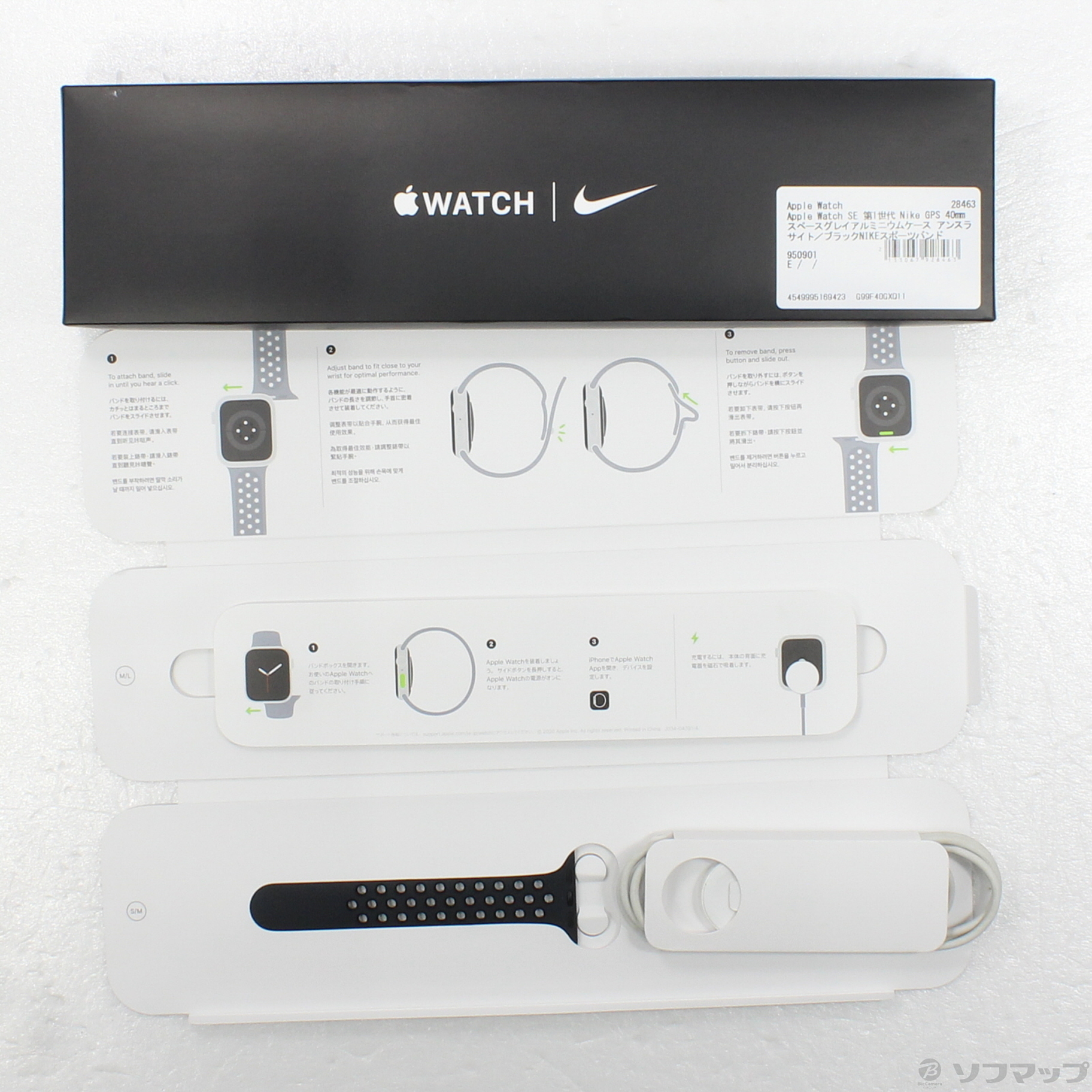 〔中古品〕 Apple Watch SE 第1世代 Nike GPS 40mm スペースグレイアルミニウムケース アンスラサイト/ブラックNikeスポーツバンド